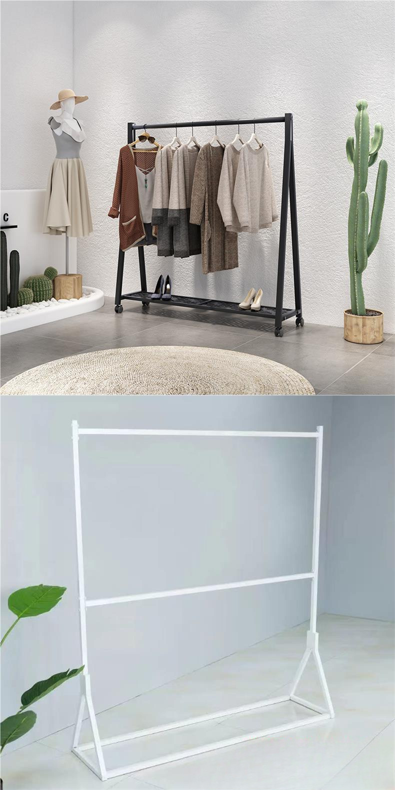 철제 의류 랙 바퀴가 달린 바닥 스탠딩 옷걸이 의류 매장 선반 의류 디스플레이 랙 쇼핑몰 바닥 스탠딩 의류스토어 가기
