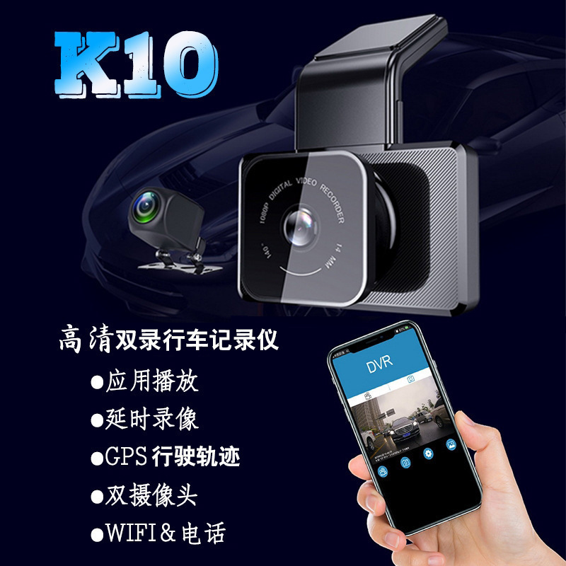 K10 黑色 3寸双录GPSWIFI流媒体行车记录仪带后拉