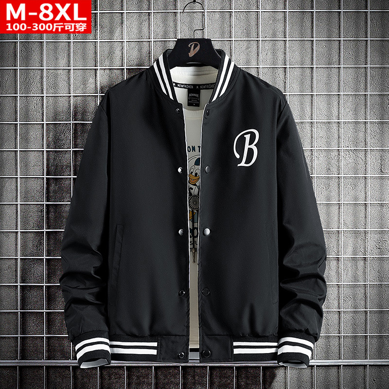 봄과 가을 유행 남성의 멋진 프린트 양면 재킷 뚱뚱한 남성 플러스 사이즈 루즈 캐주얼 야구 칼라 재킷