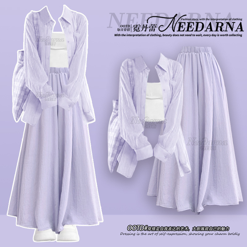 • 보라색 셔츠 + 조끼 + 보라색 치마바지 [3종세트]