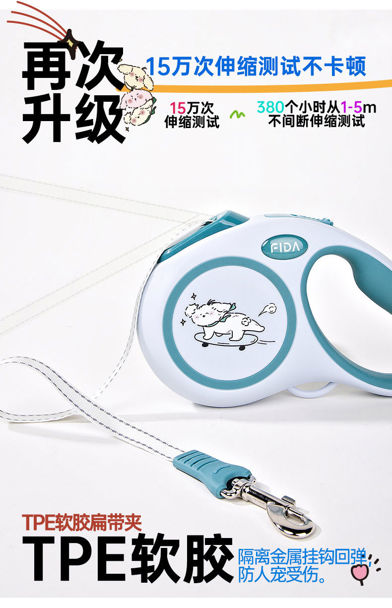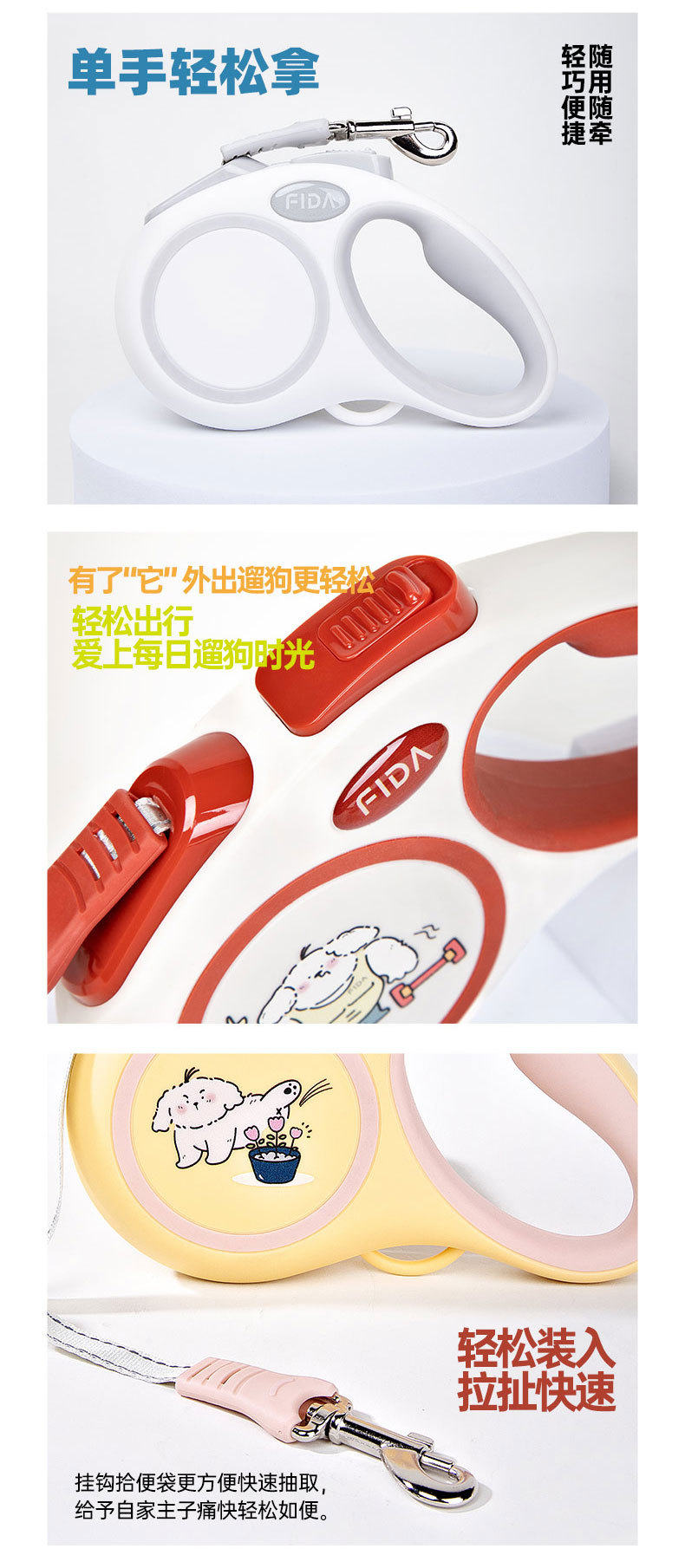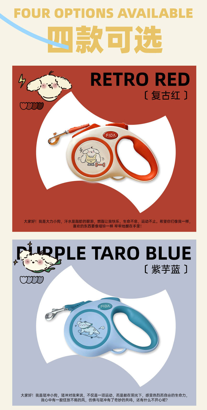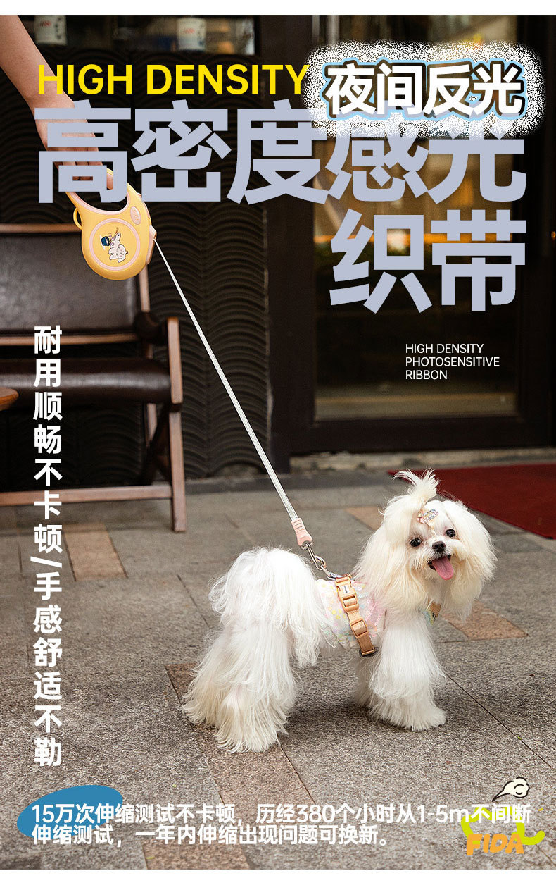 ✅Fida Retro Puppy 자동 망원경 견인 폭발 방지 반사 리본 대형, 중형 및 작은 개 고양이 견인스토어 가기