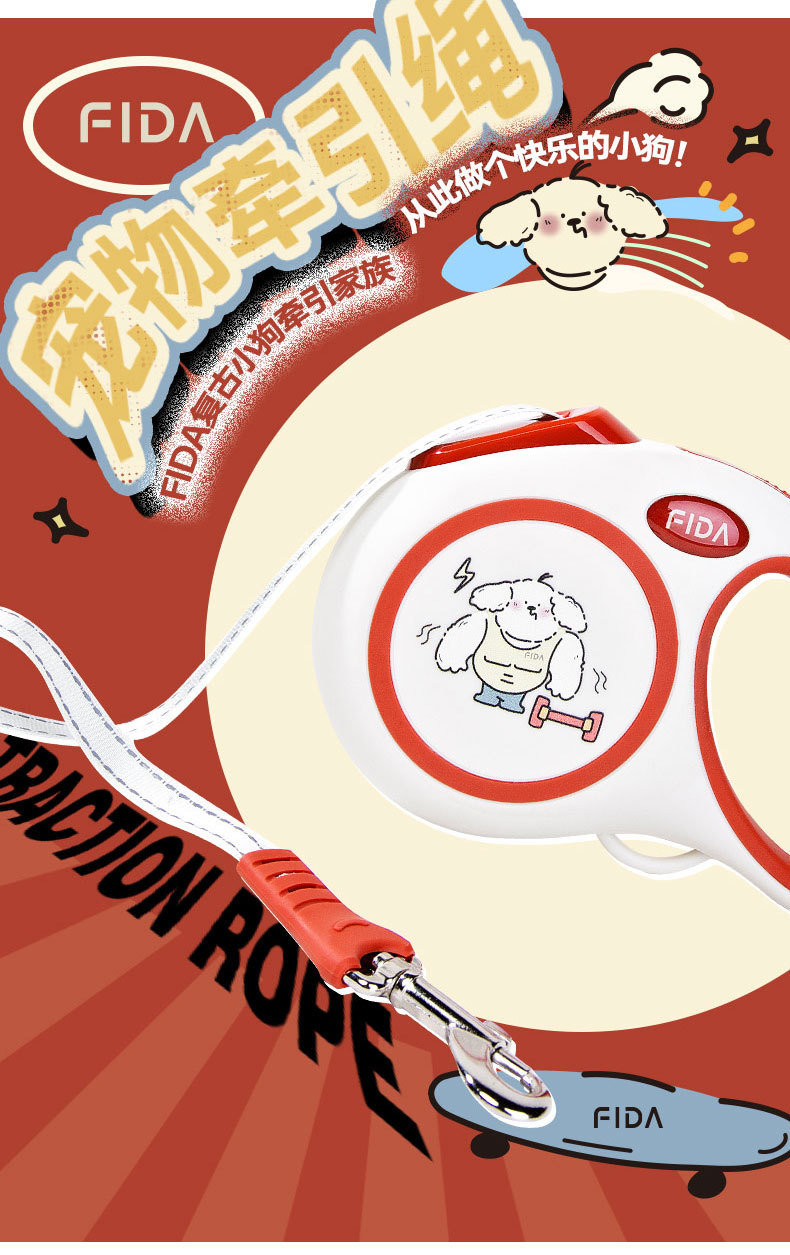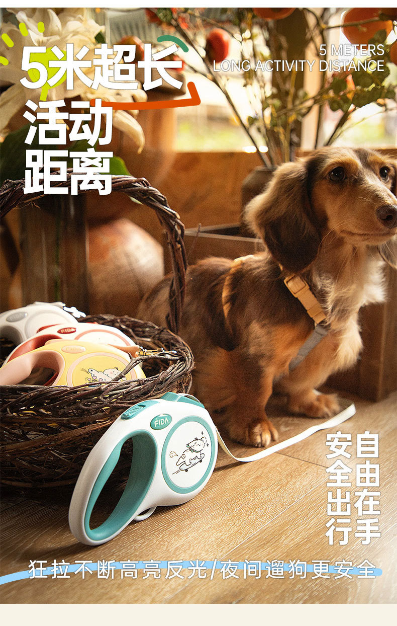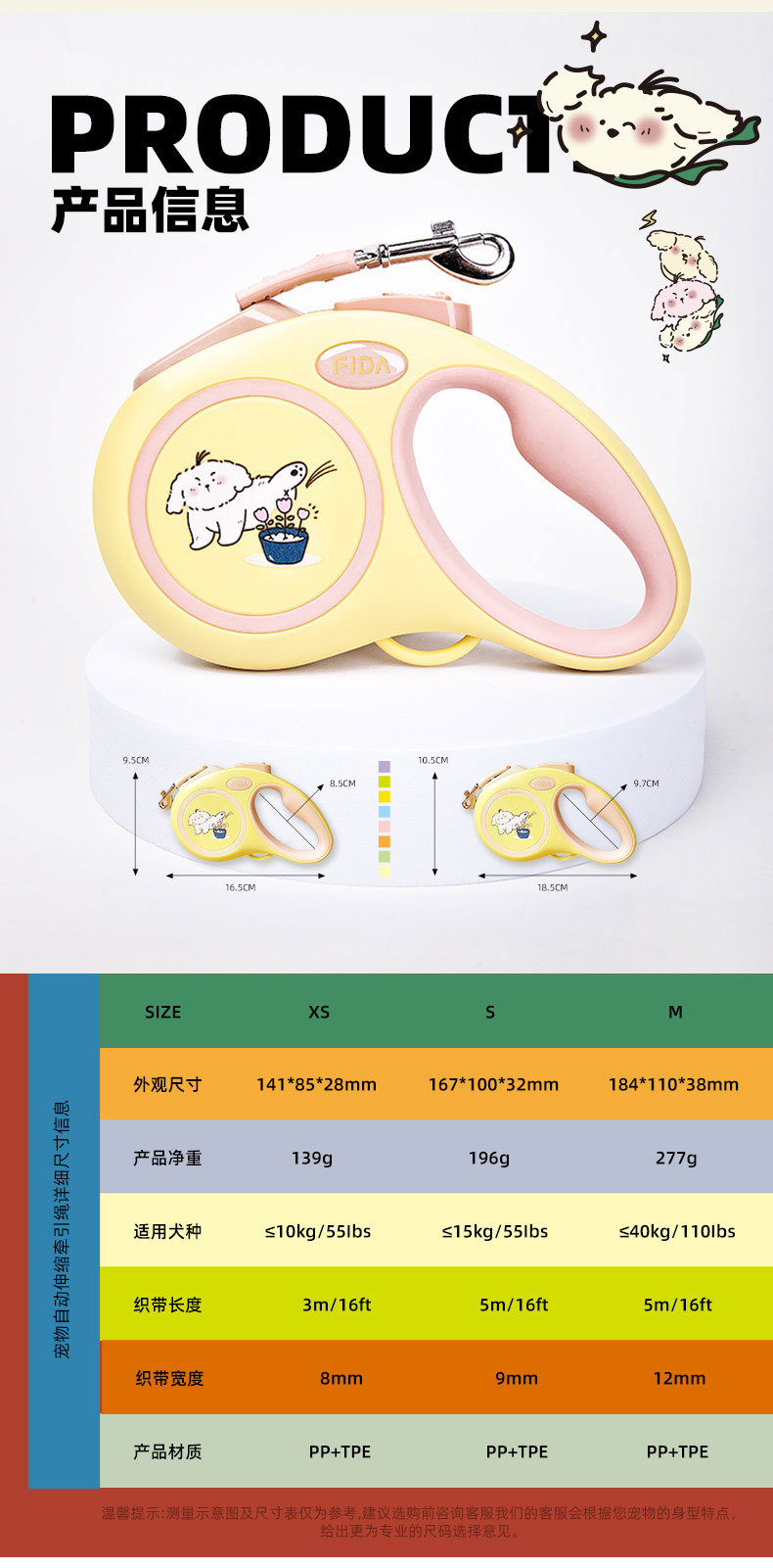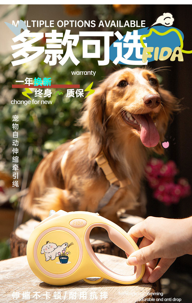 ✅Fida Retro Puppy 자동 망원경 견인 폭발 방지 반사 리본 대형, 중형 및 작은 개 고양이 견인스토어 가기