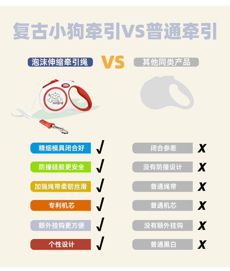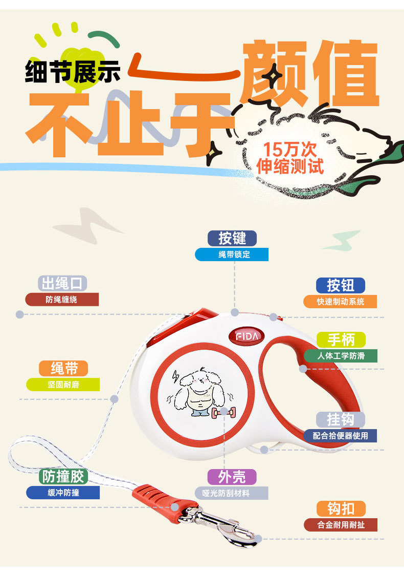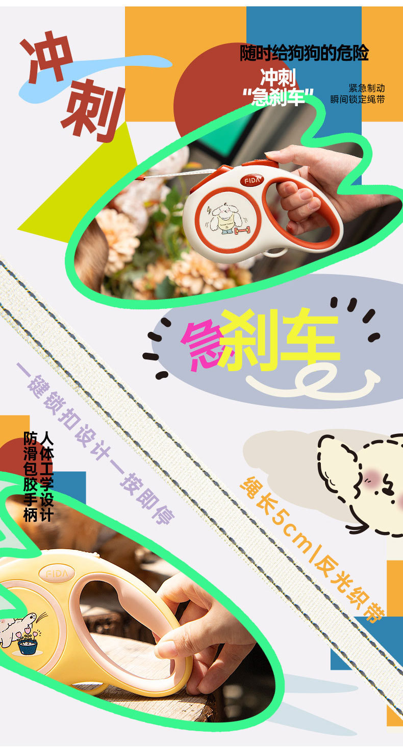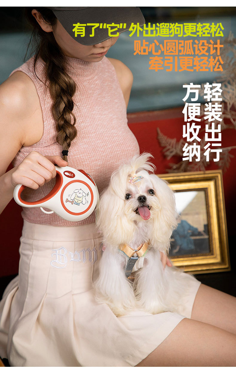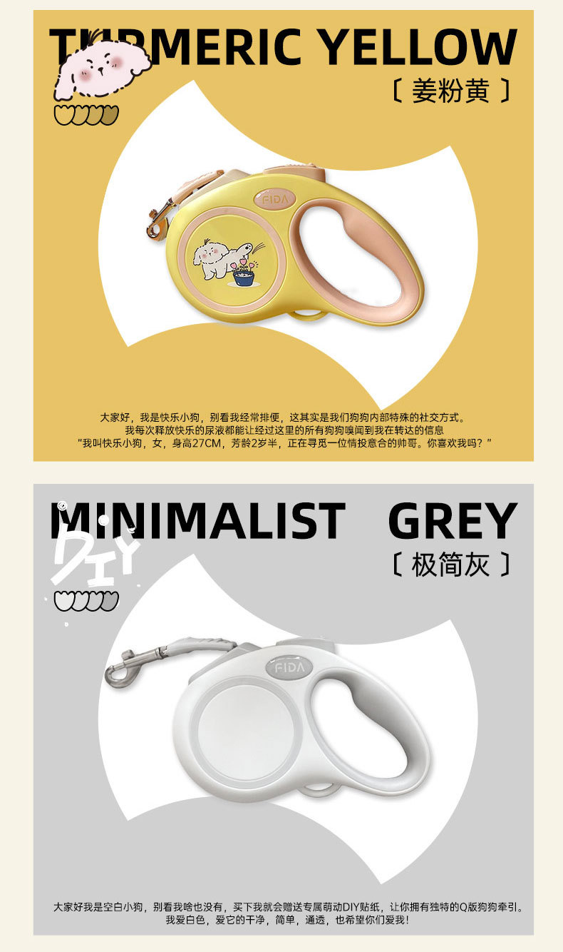 ✅Fida Retro Puppy 자동 망원경 견인 폭발 방지 반사 리본 대형, 중형 및 작은 개 고양이 견인스토어 가기