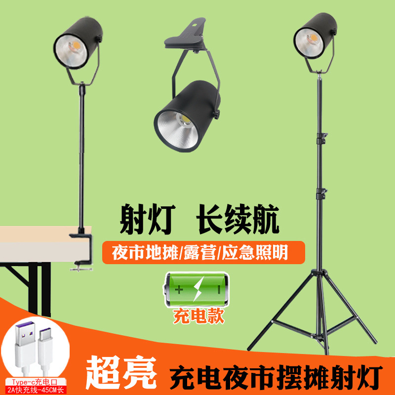 야간 시장 스톨 라이트 LED 충전 클립 스포트라이트 스톨 야외 모바일 조명 텔레스코픽 브래킷 비상 캠핑 라이트스토어 가기