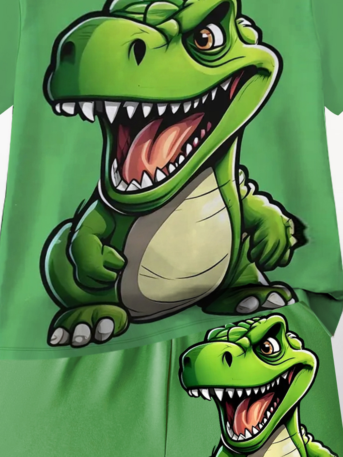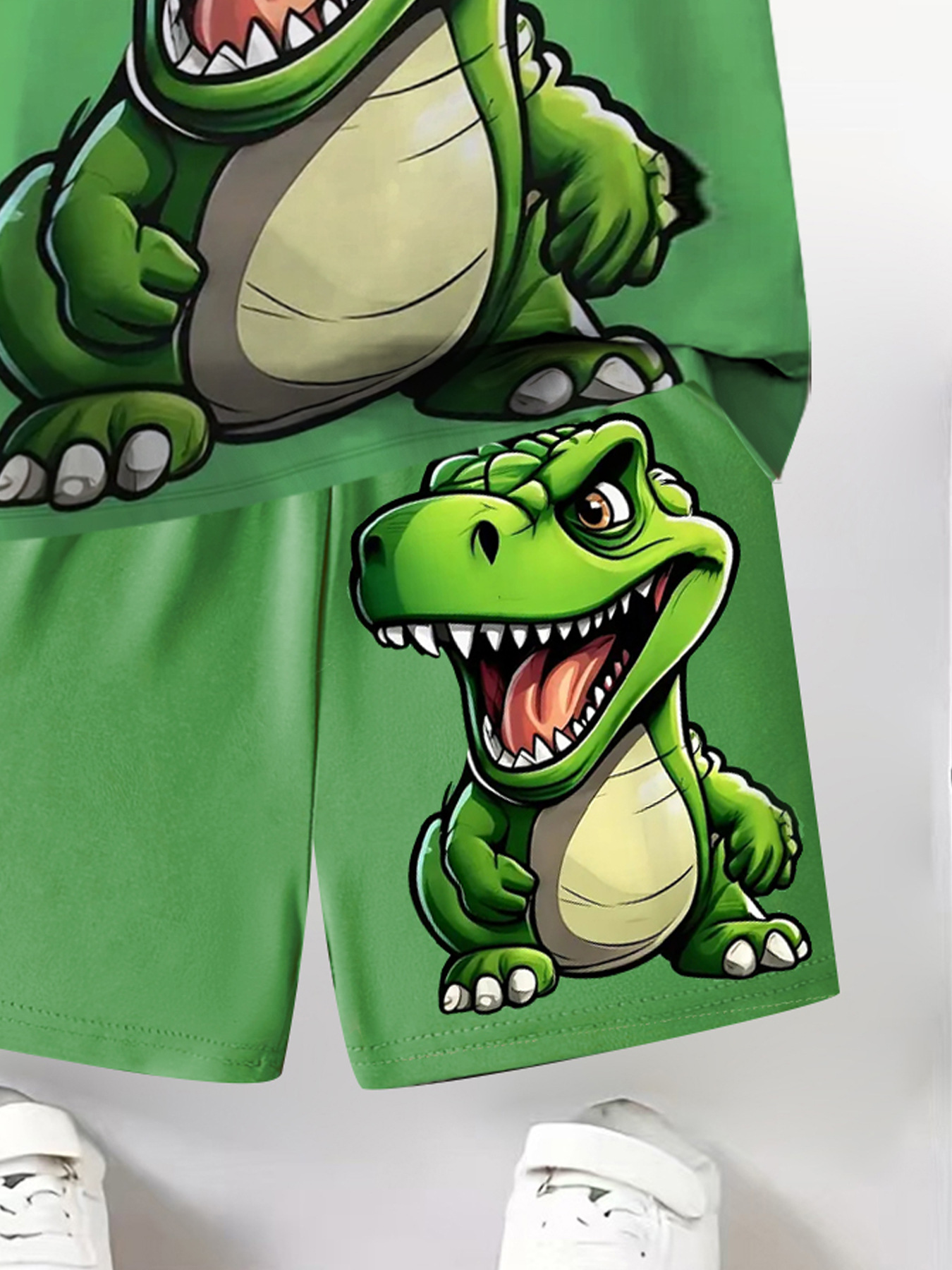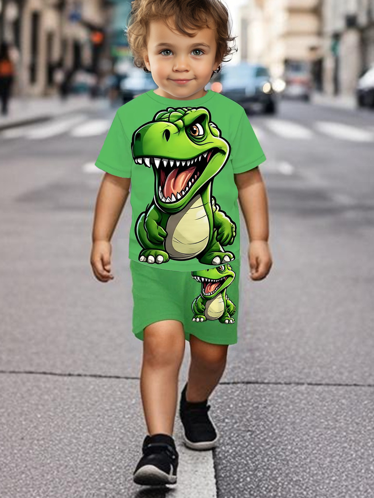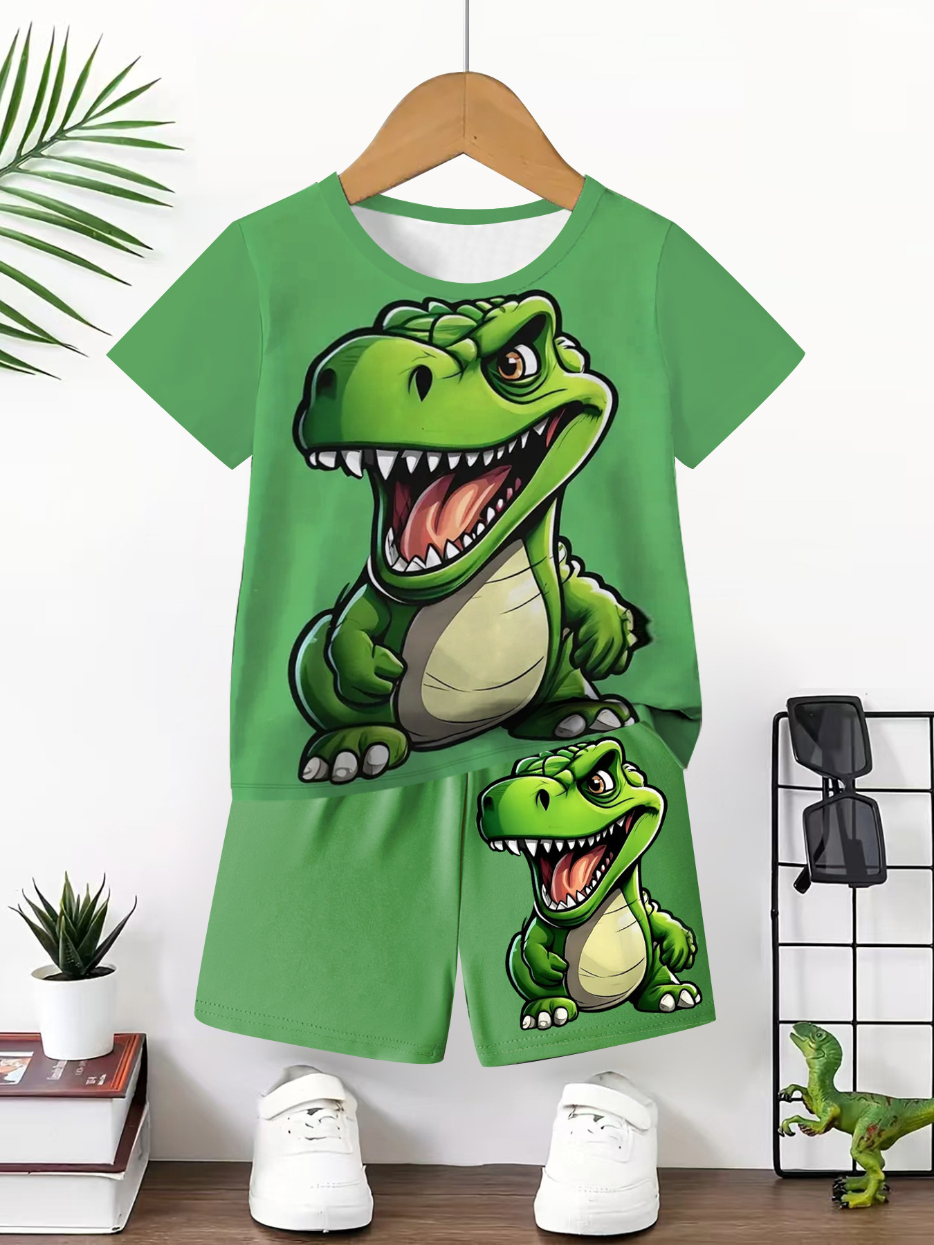 크로스보더 INS 소형 및 중형 아기 소년 여름 만화 공룡 프린트 반팔 탑 반바지 캐주얼 슈트스토어 가기