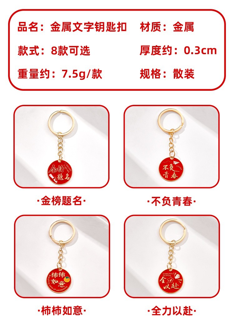 1 번 영감을주는 텍스트 키 체인 학생 대학 입학 시험 축복 작은 선물 창조적 인 금속 키 체인 펜던트스토어 가기