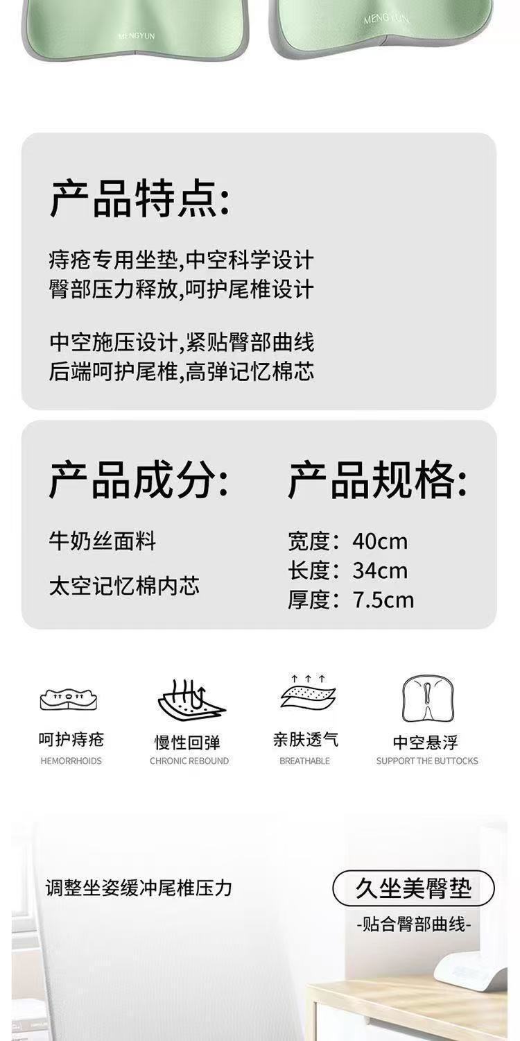 사무실 좌석 쿠션 긴 쿠션 메모리 코튼 쿠션 느린 리바운드 엉덩이 쿠션 스테이션 의자 쿠션 통기성 엉덩이 쿠션스토어 가기