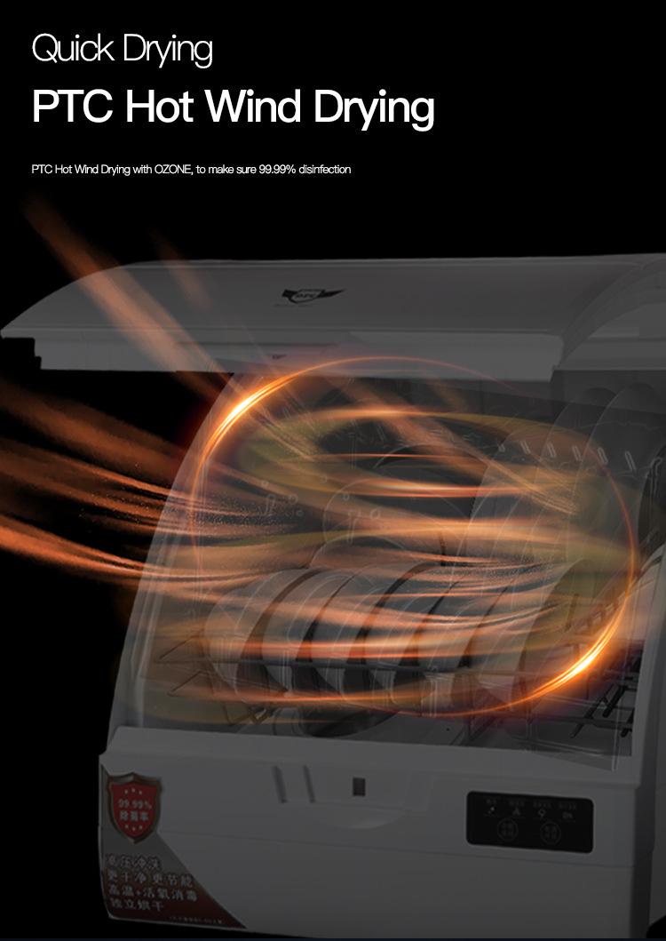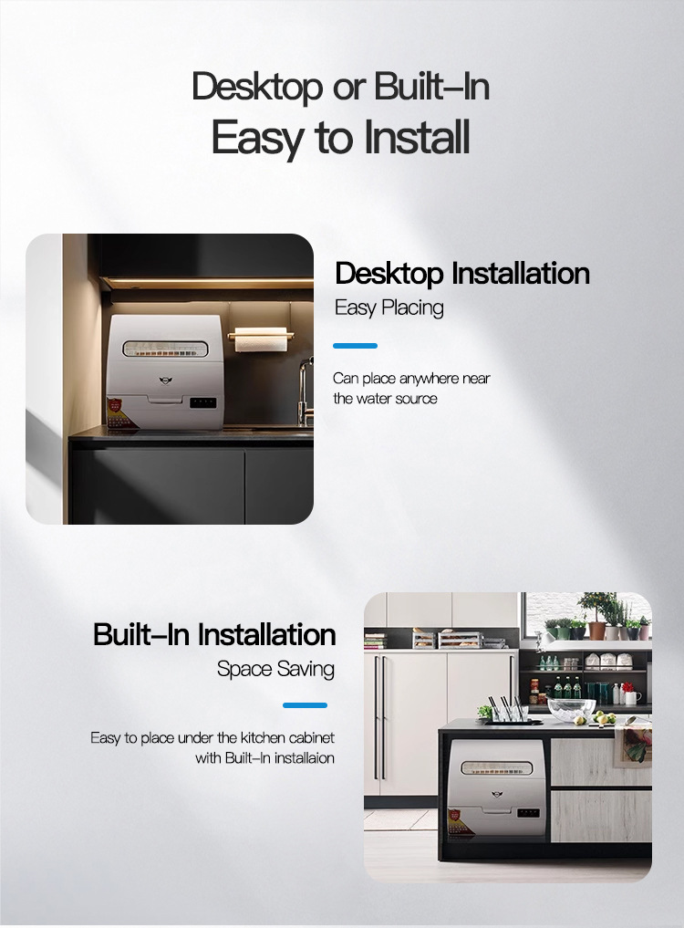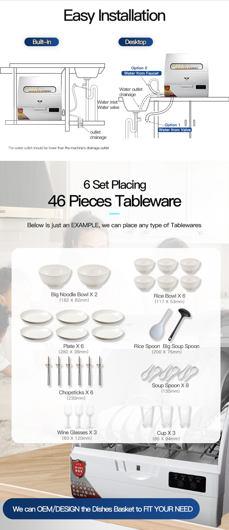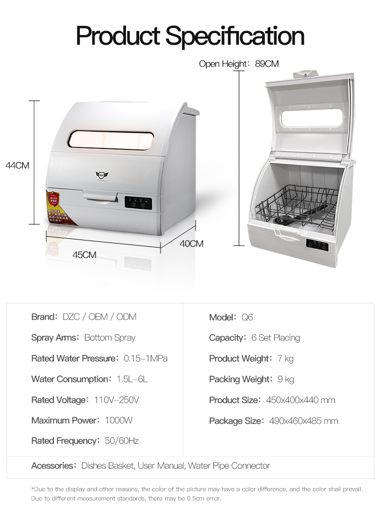 공장 직접 판매 Deshi 주방 가정용 식기 세척기 미니 데스크탑 스마트 스토리지 식기 세척기 물 및 전기 절약 6인용