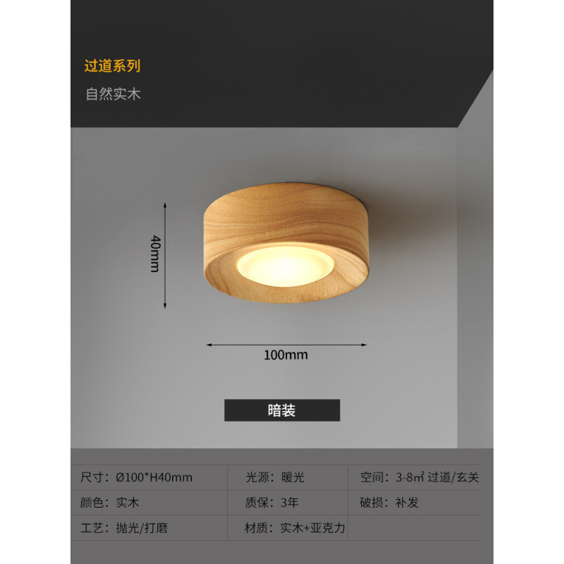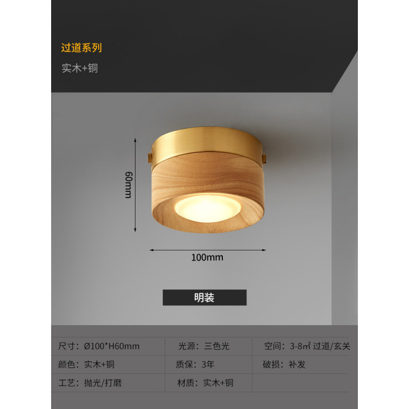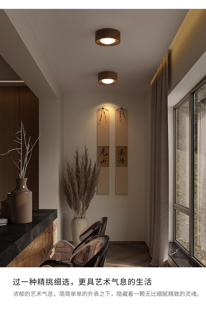 중국 스타일의 가벼운 고급 호두 표면 장착형 통 빈티지 거실 복도 통로 천장 조명 가정용 일본식 천장 스포트라이트스토어 가기