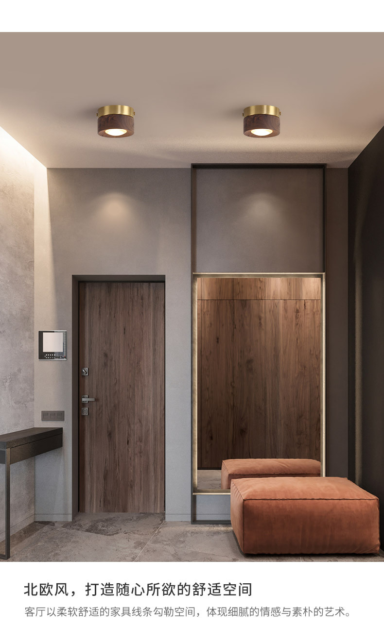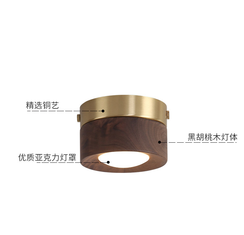 중국 스타일의 가벼운 고급 호두 표면 장착형 통 빈티지 거실 복도 통로 천장 조명 가정용 일본식 천장 스포트라이트