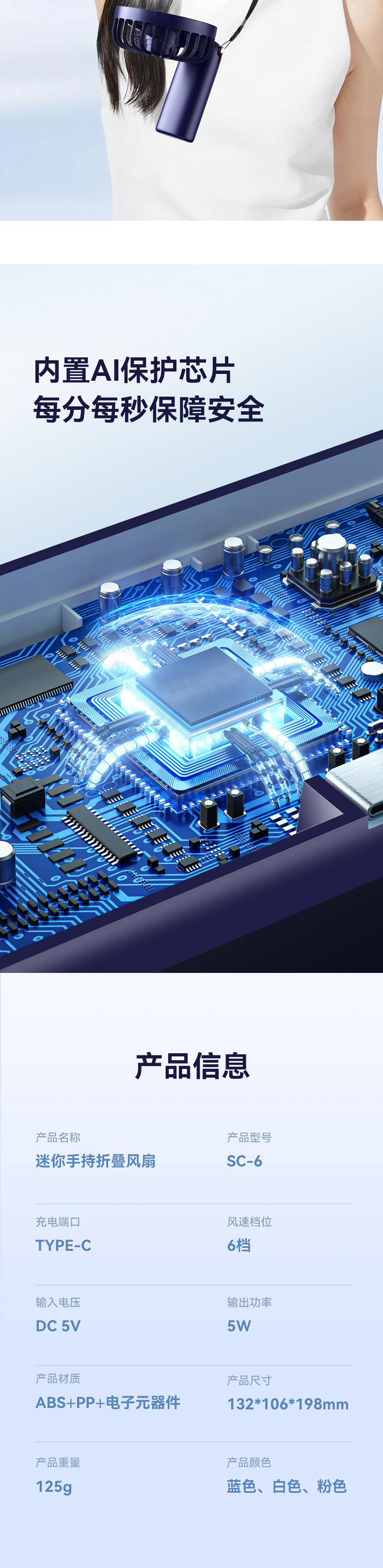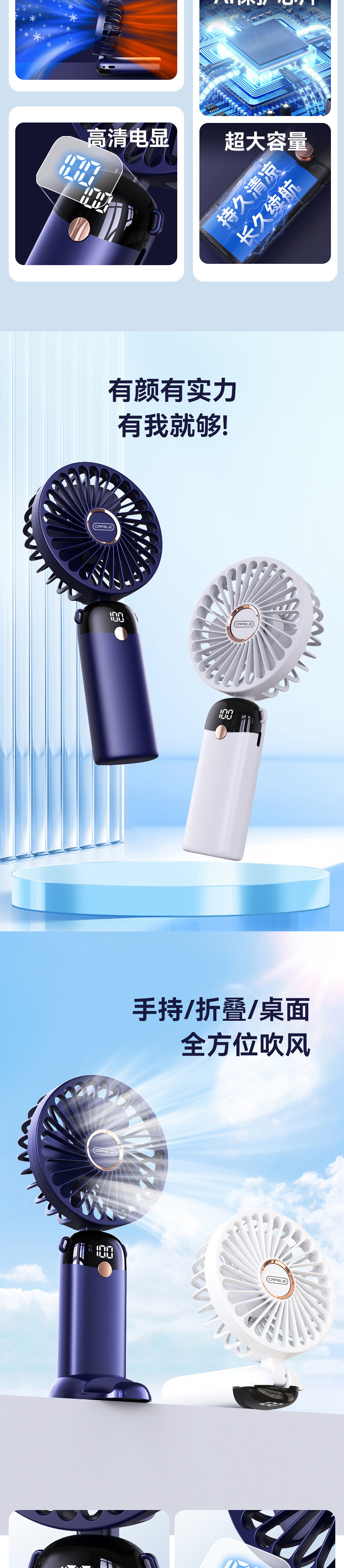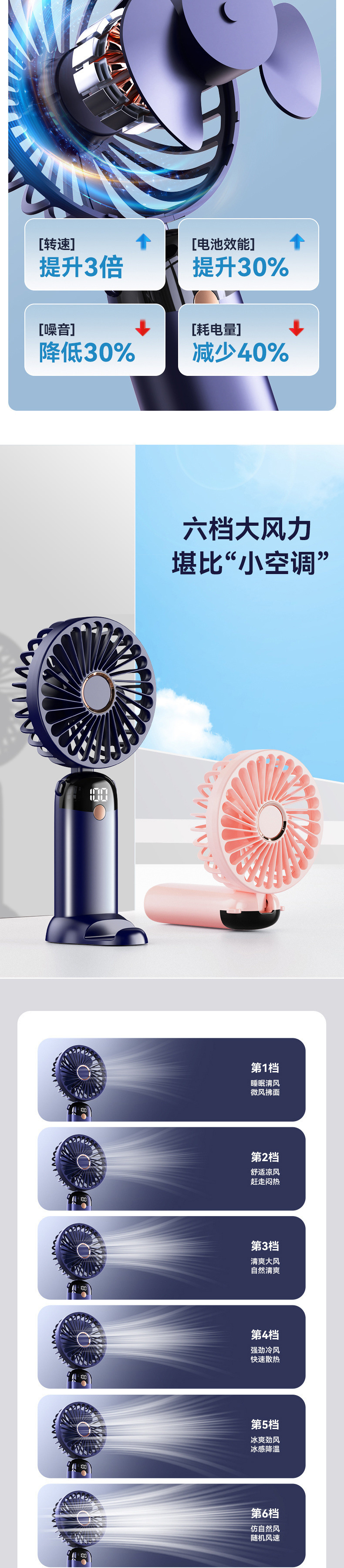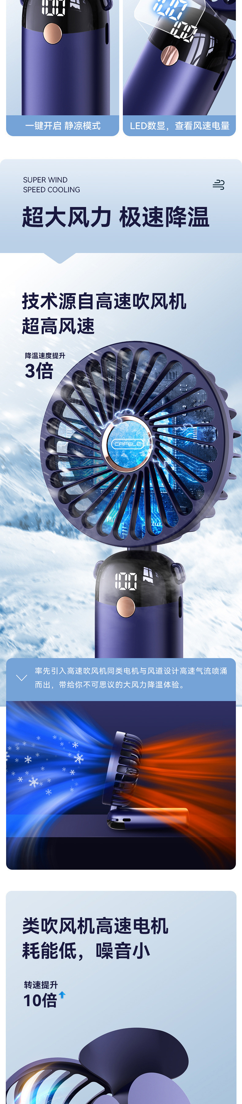 • 사파이어 블루 [6단계 강풍/접이식/걸이형/데스크탑/휴대폰 거치대] 디지털 전원 표시