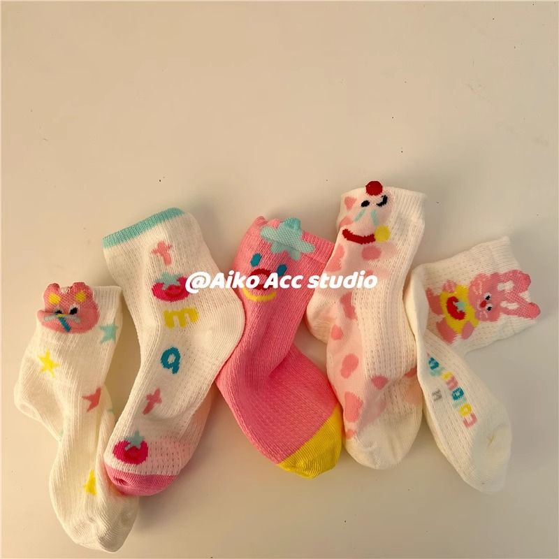 소녀 양말 여름 얇은면 메쉬 튜브 어린이 만화 소녀 공주 레이스 귀여운 아기 통기성
