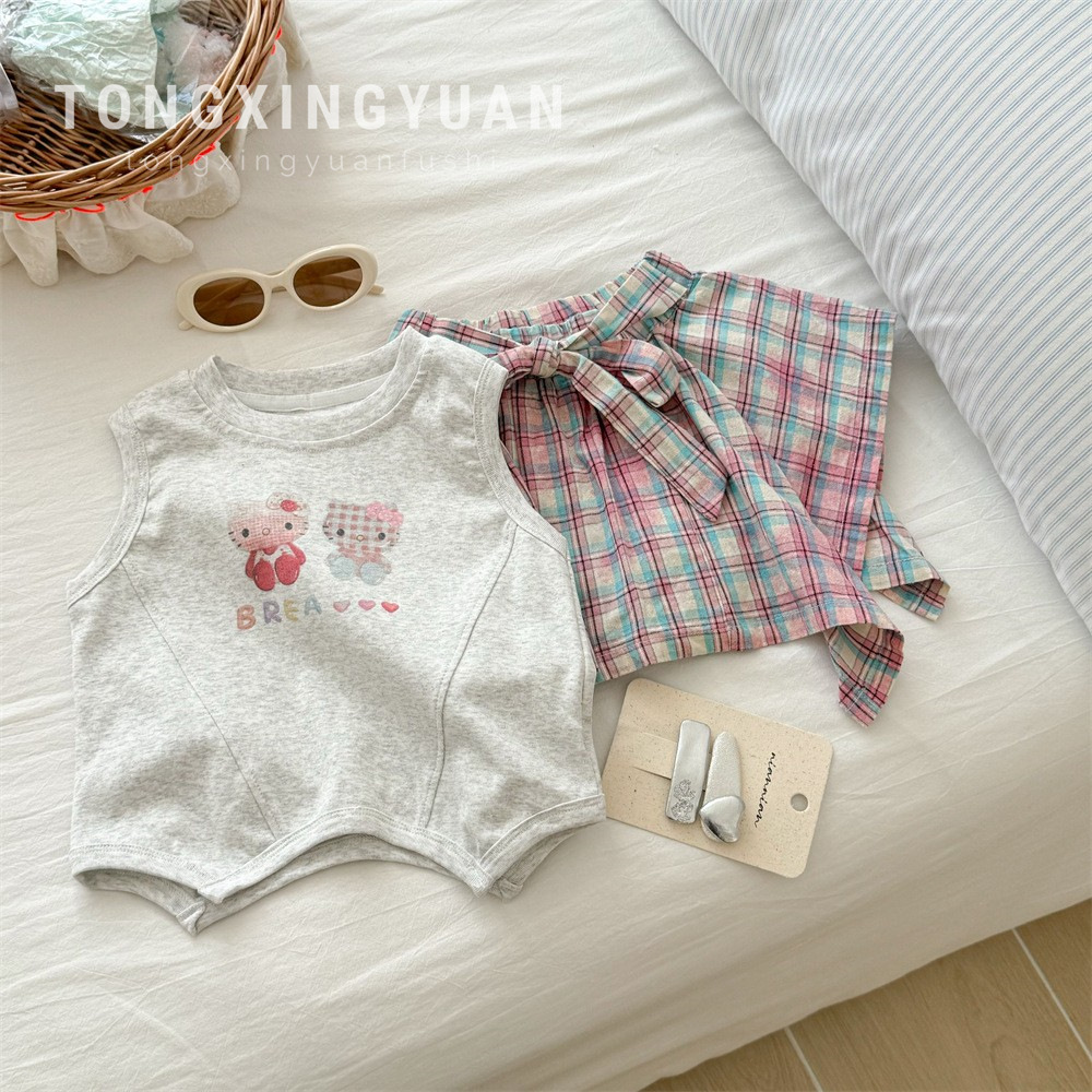 Tong Xingyuan 소녀의 세련된 세트 여름 만화 조끼 독특한 불규칙한 Culottes 투피스 세트 여름 새로운 유행스토어 가기