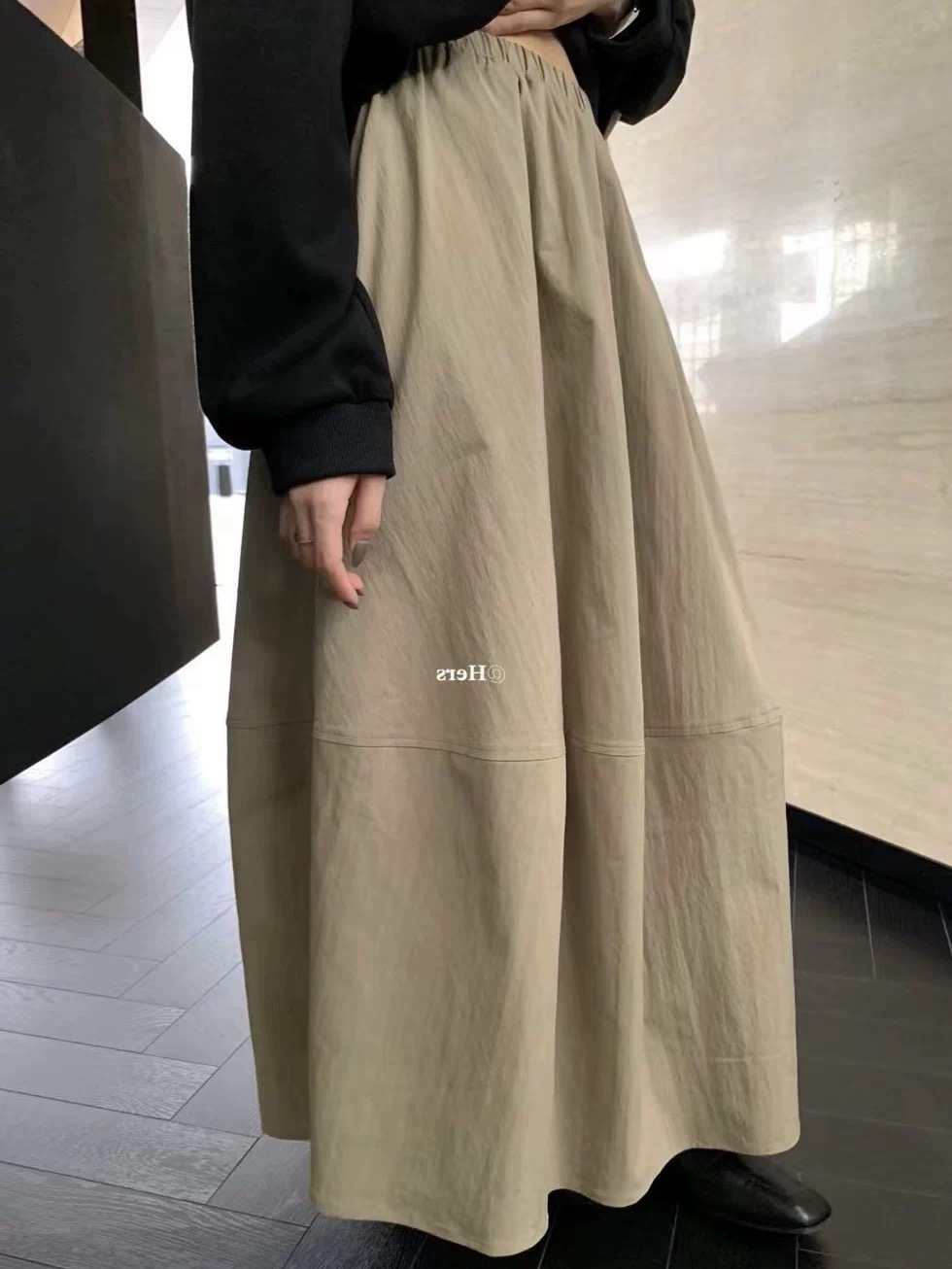 검은 꽃 버드 스커트 여성의 초가을 2024 새로운 스타일 구부러진 허리 커버 슬리밍 높은 허리 중간 길이 긴 스커트스토어 가기