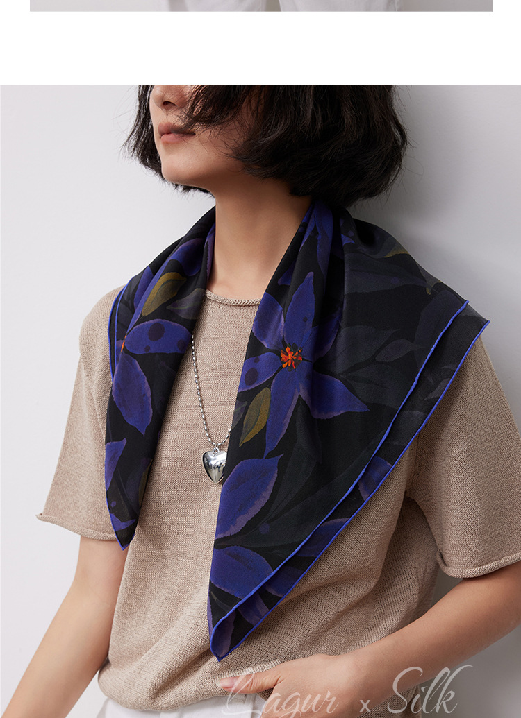 "그린 드림" 100% 멀 베리 실크 스퀘어 스카프 흰색 얇은 실크 스카프 여성을위한 여름 선물