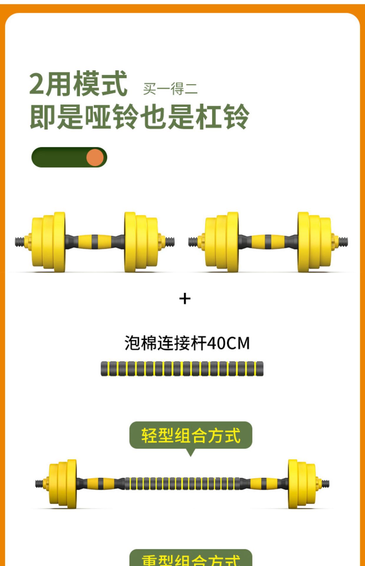 • 노란색 40kg 덤벨 + 1.8m 탄소강 바벨 바