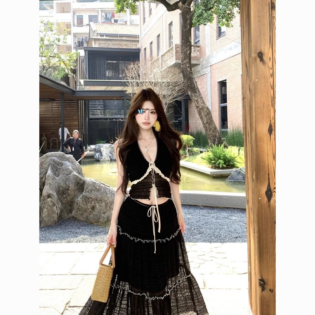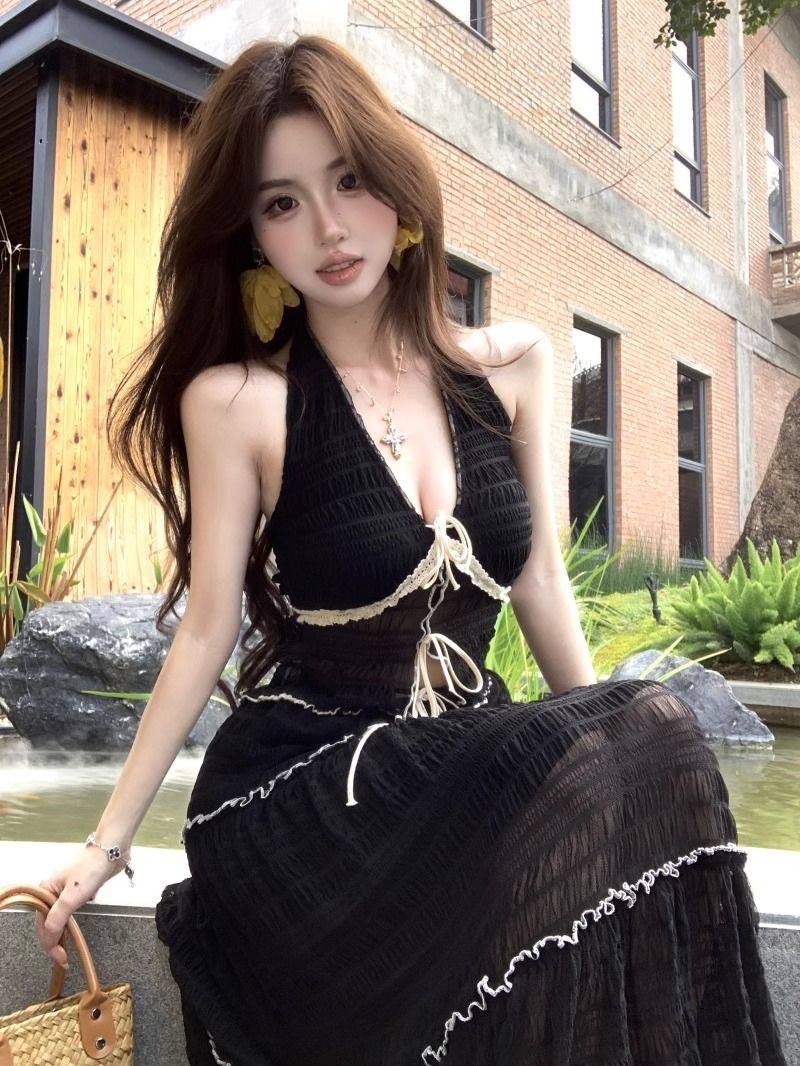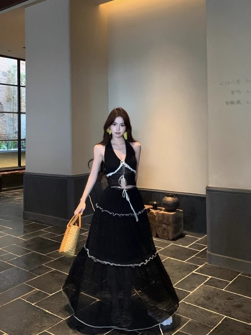 2025 새로운 블랙 3 피스 세트 하이 레벨 V-넥 교수형 목 스트랩 바디 수영복 홀리데이 스타일 스코어에 대한 순수한 욕망