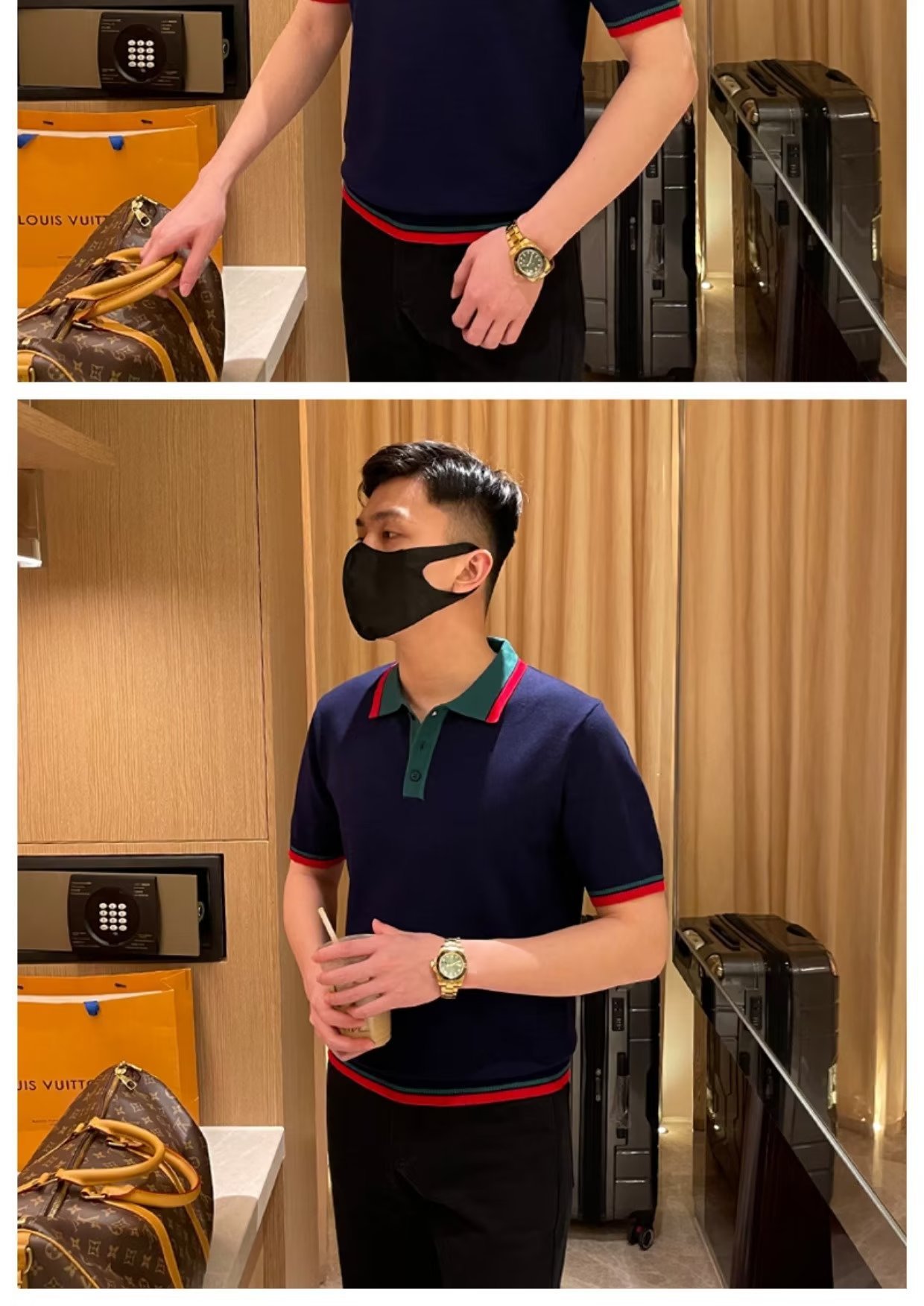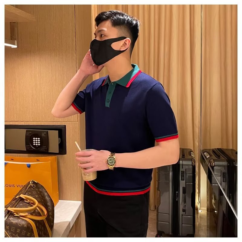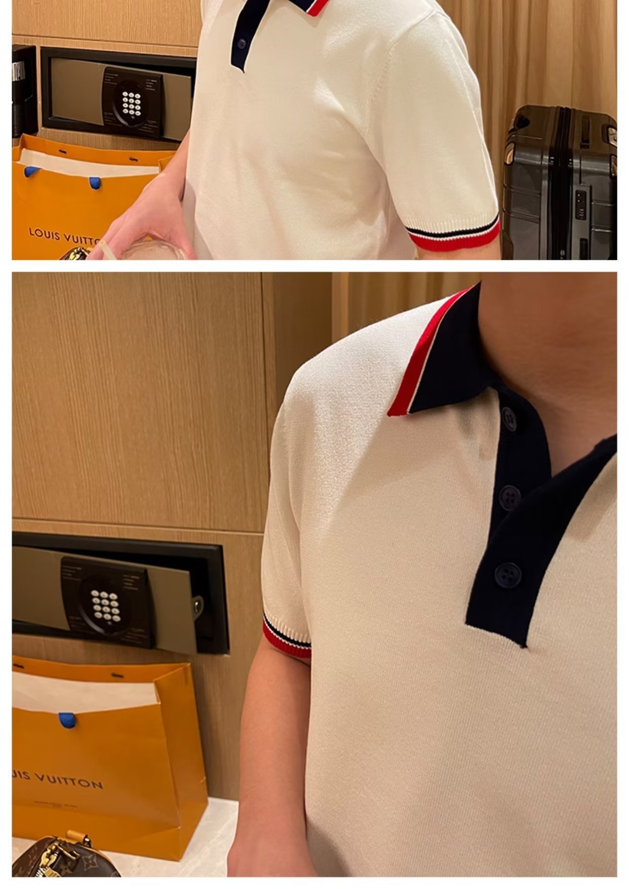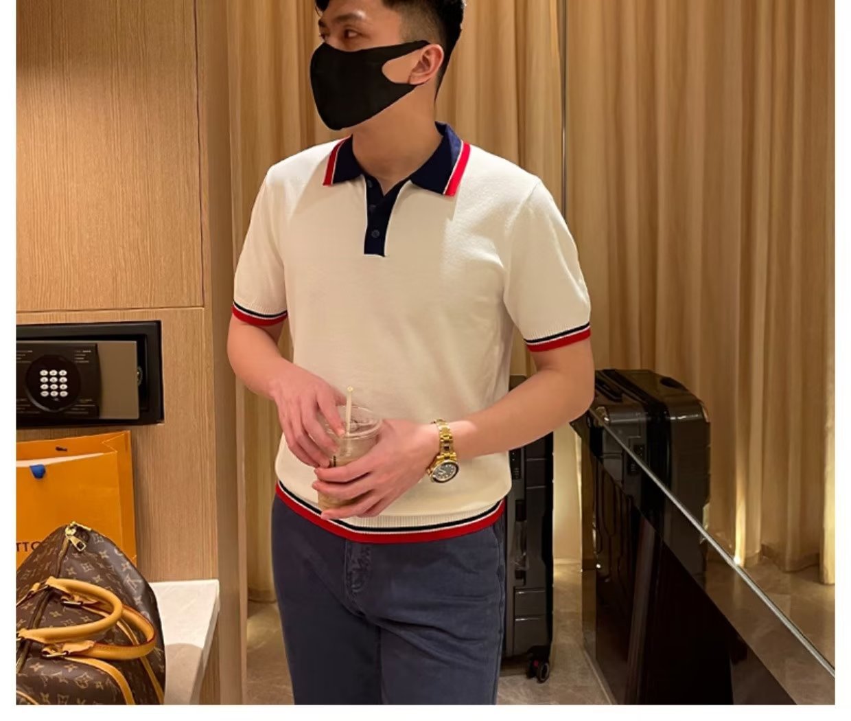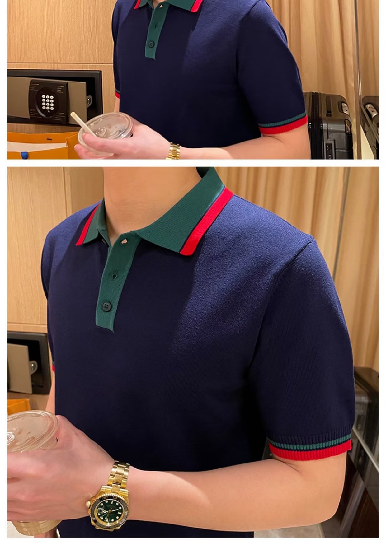 패션 2023 우아한 청소년 인기있는 슬림 핏 새로운 유행 줄무늬 게으른 폴로 셔츠 남자의 반팔 유행 여름스토어 가기