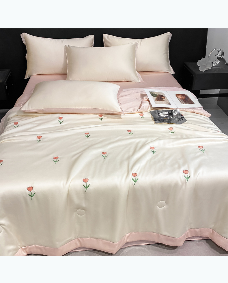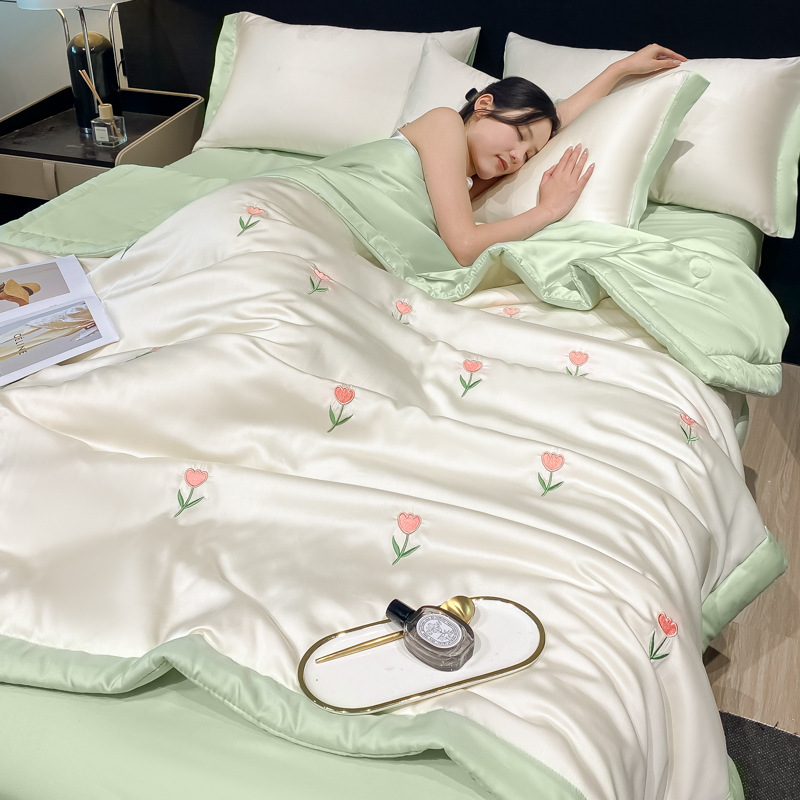 아이스 실크 여름 쿨 퀼트 머신 세탁기 3-4 조각 세트 싱글 더블 여름 얇은 퀼트 아이스 쿨 알몸 슬리핑 에어컨 퀼트스토어 가기