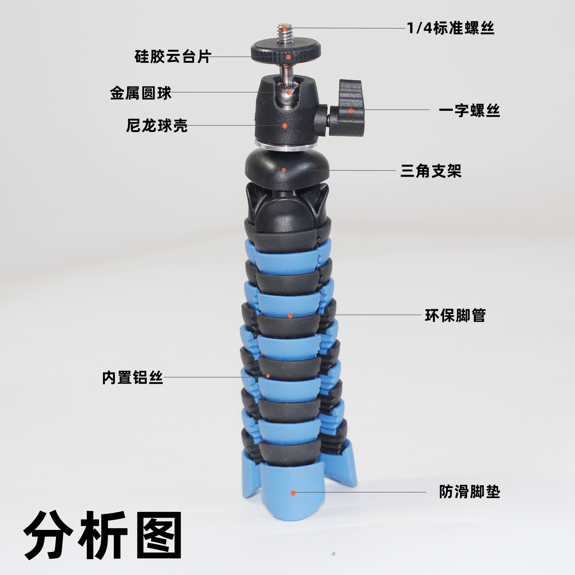 卖点4:腿部采用高弹力胶,手感舒适,更有质感,缠绕物体摩擦力也会更大更安全