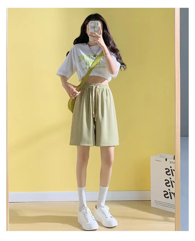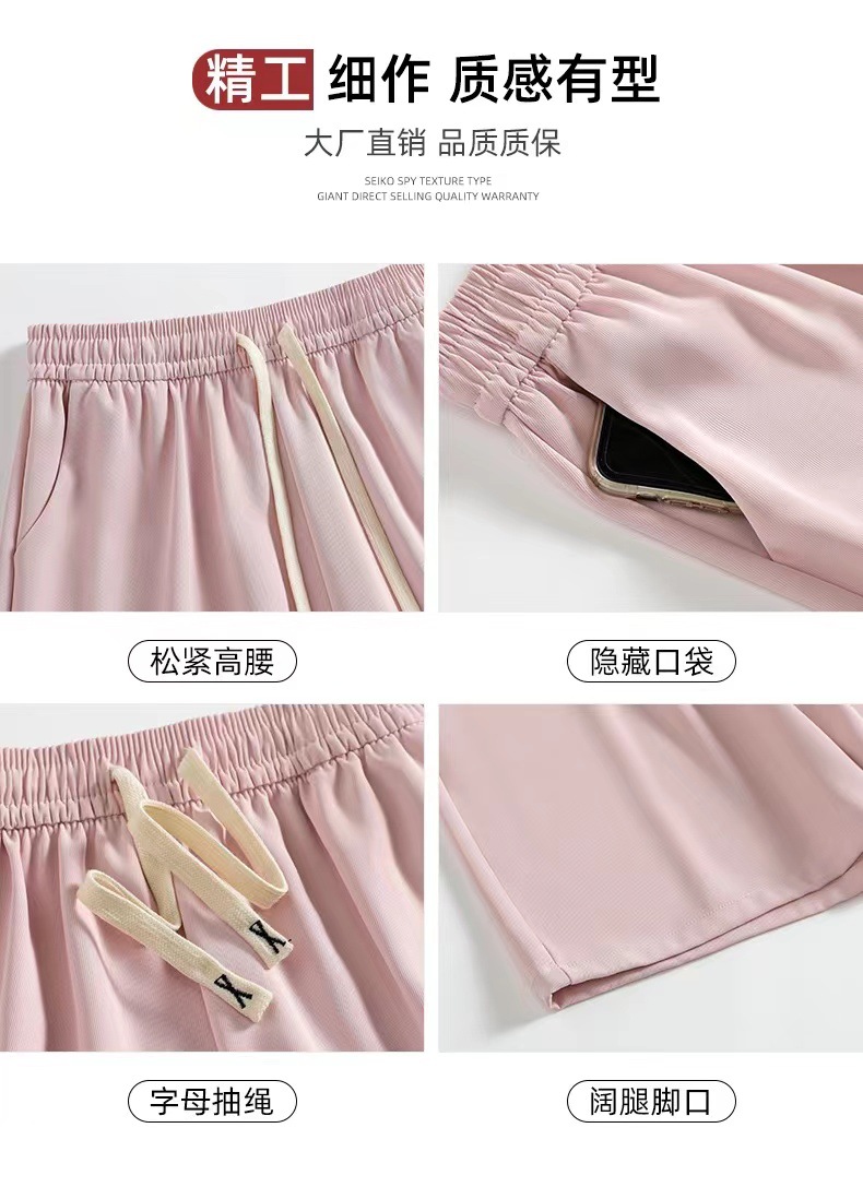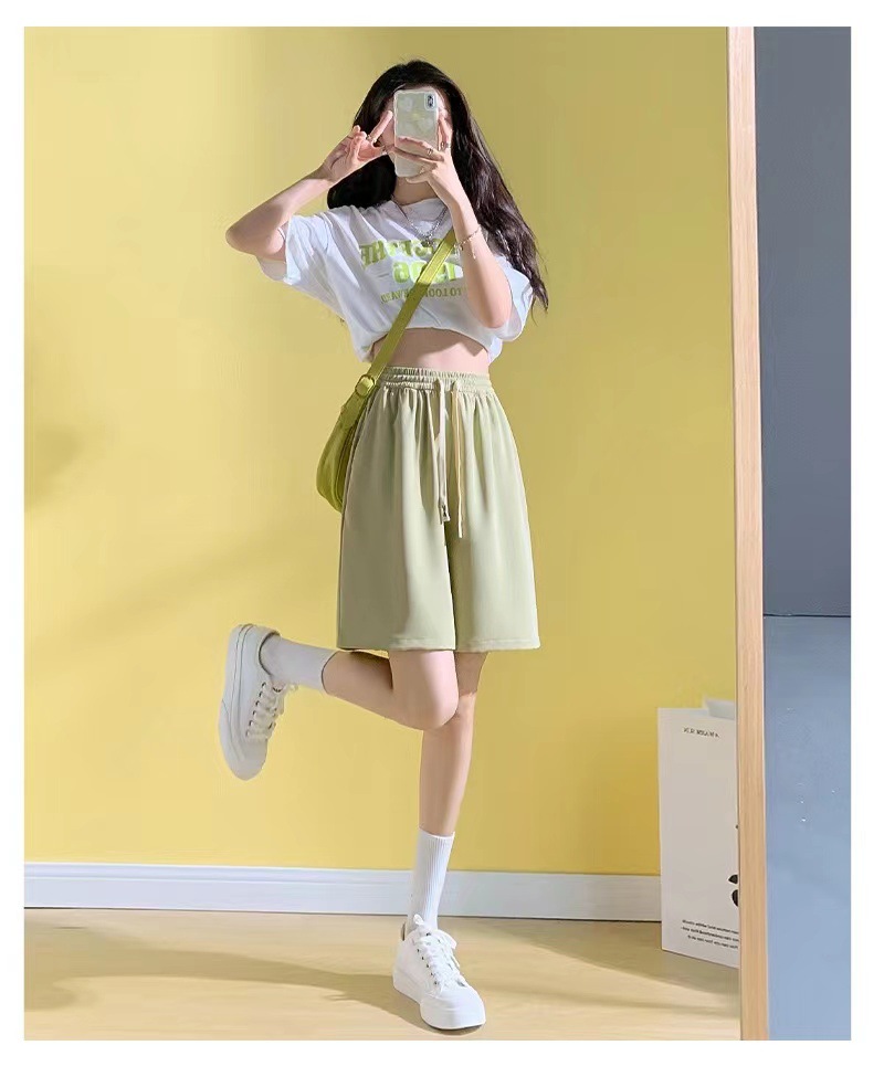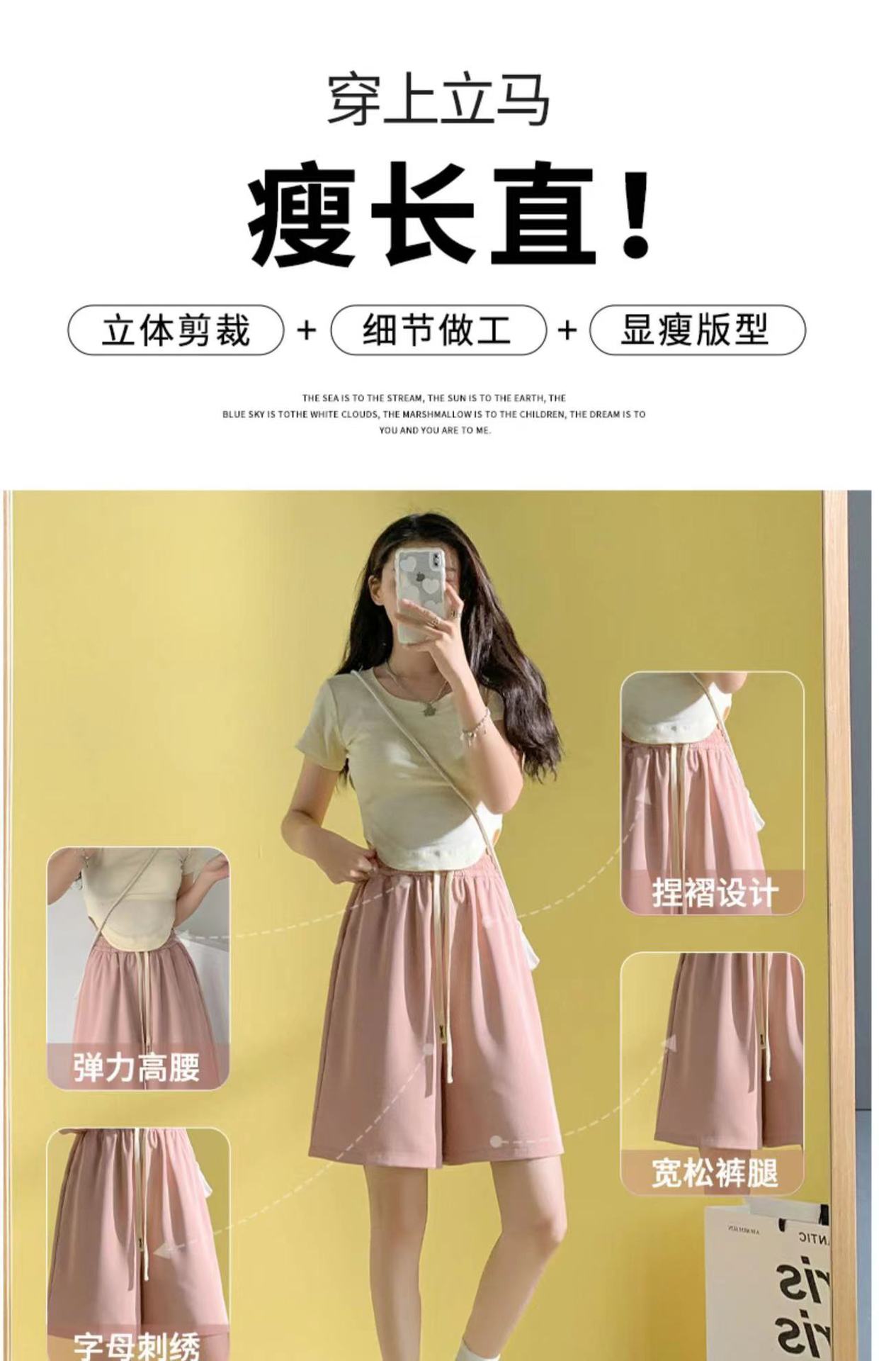 세트 반바지 소녀 여름 5 점 외부 착용 캐주얼 바지 느슨한 올매치 러닝 와이드 레그 바지 트렌디 한 핑크 스포츠 바지