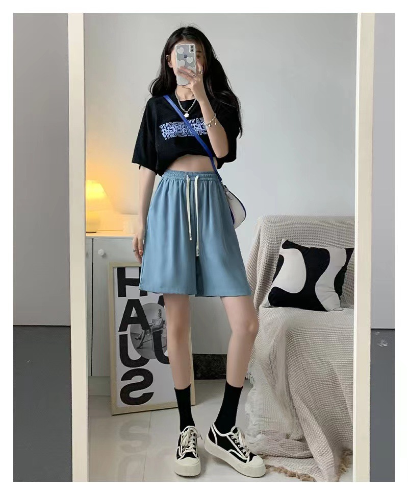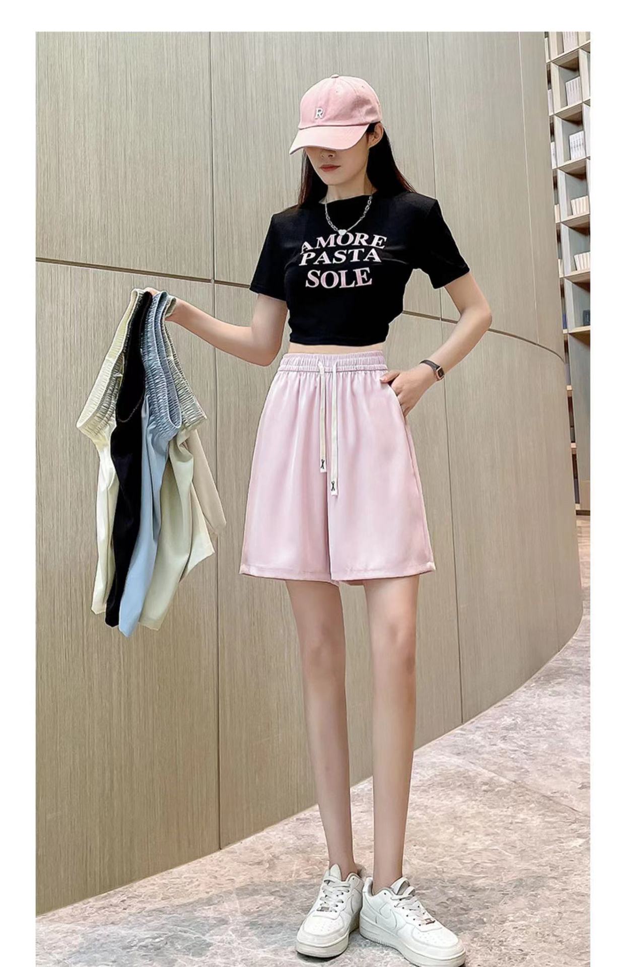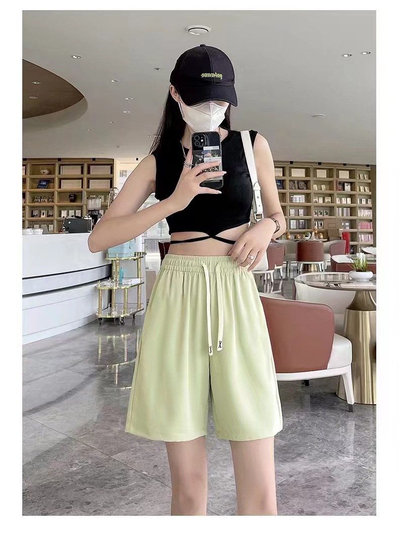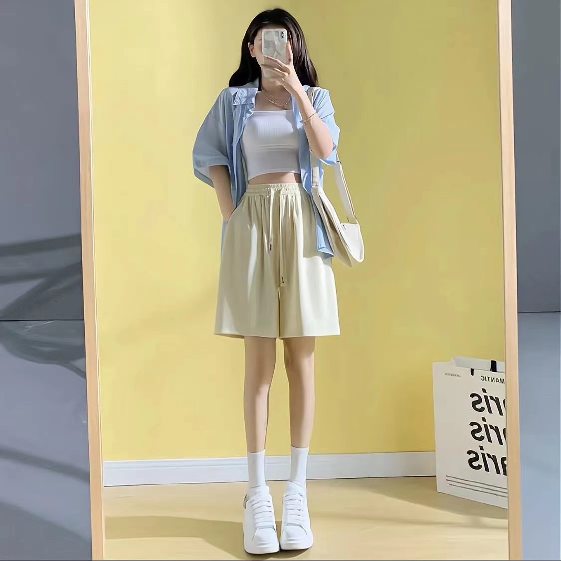 세트 반바지 소녀 여름 5 점 외부 착용 캐주얼 바지 느슨한 올매치 러닝 와이드 레그 바지 트렌디 한 핑크 스포츠 바지