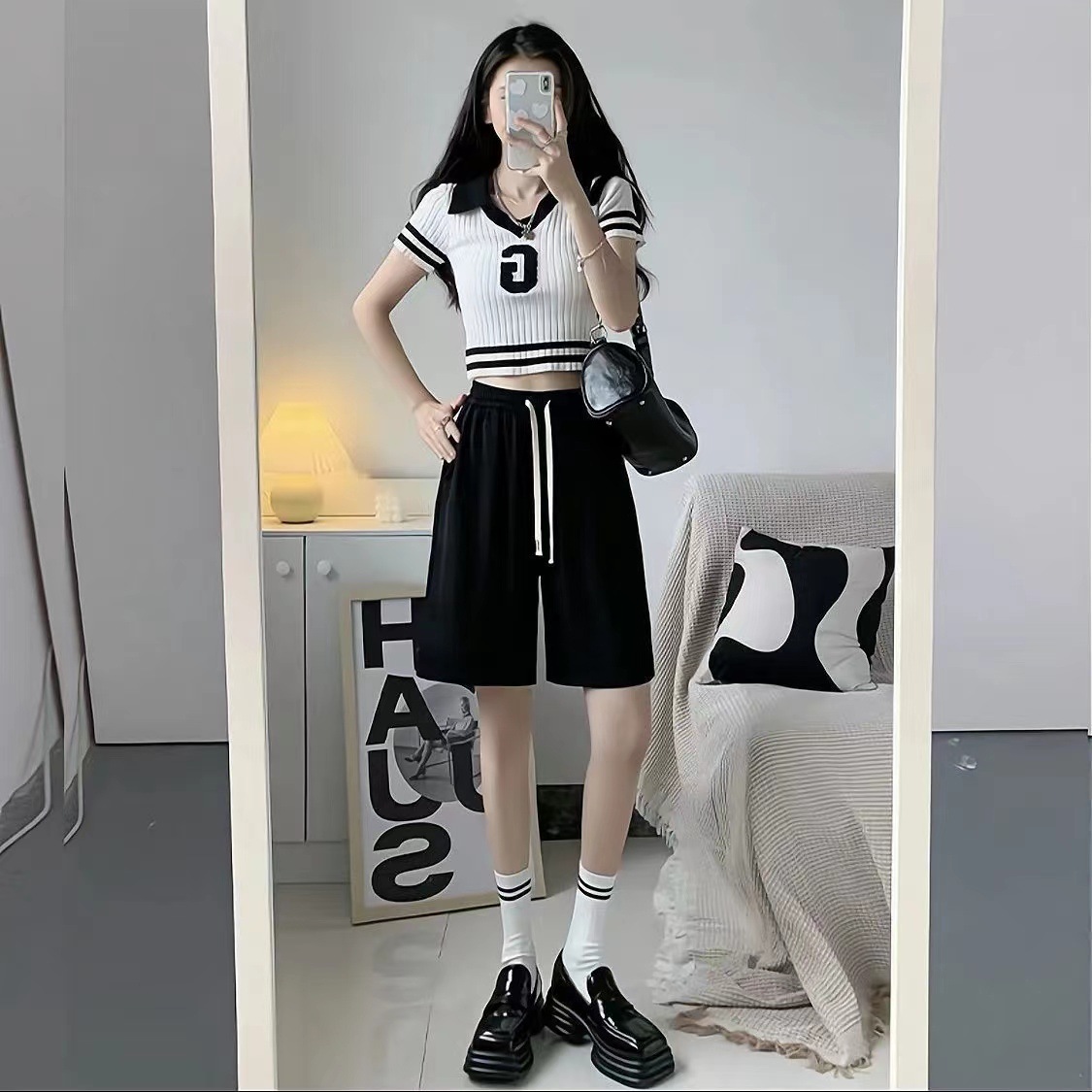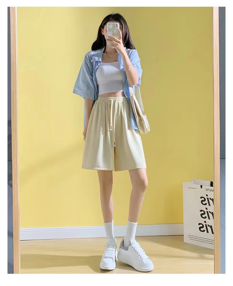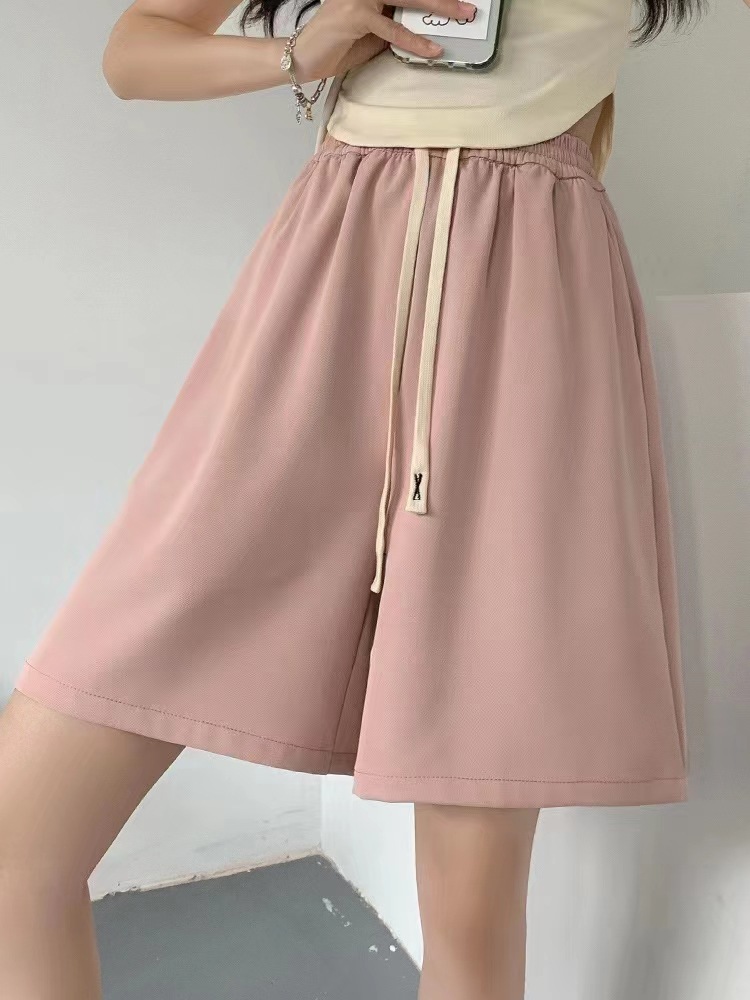 세트 반바지 소녀 여름 5 점 외부 착용 캐주얼 바지 느슨한 올매치 러닝 와이드 레그 바지 트렌디 한 핑크 스포츠 바지스토어 가기