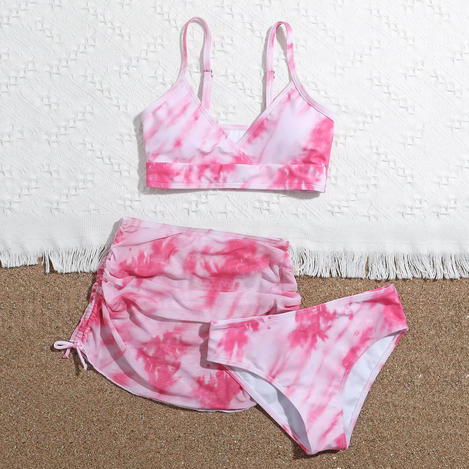 유럽과 미국은 국경을 넘나 드는 새로운 어린이 수영복 타이 염색 3 피스 메쉬 스커트 부모 자식 성인 수영복 비키니스토어 가기