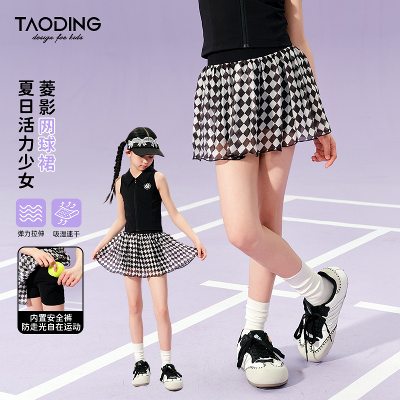Taoding [Lingyingyuedong] 여아 스커트 여름 신작 메쉬 스커트 노출 방지 스포츠 스커트 테니스 스커트