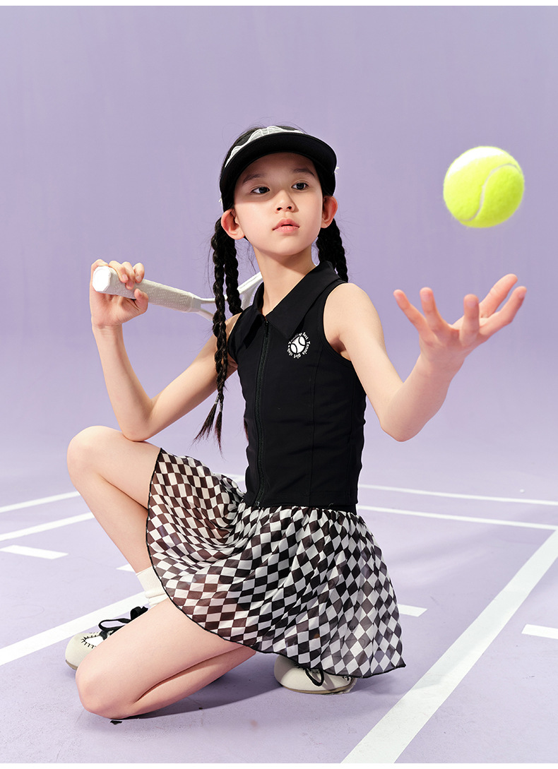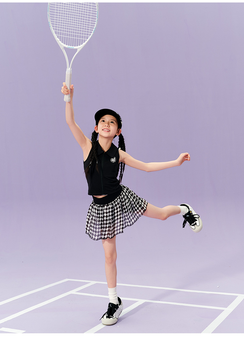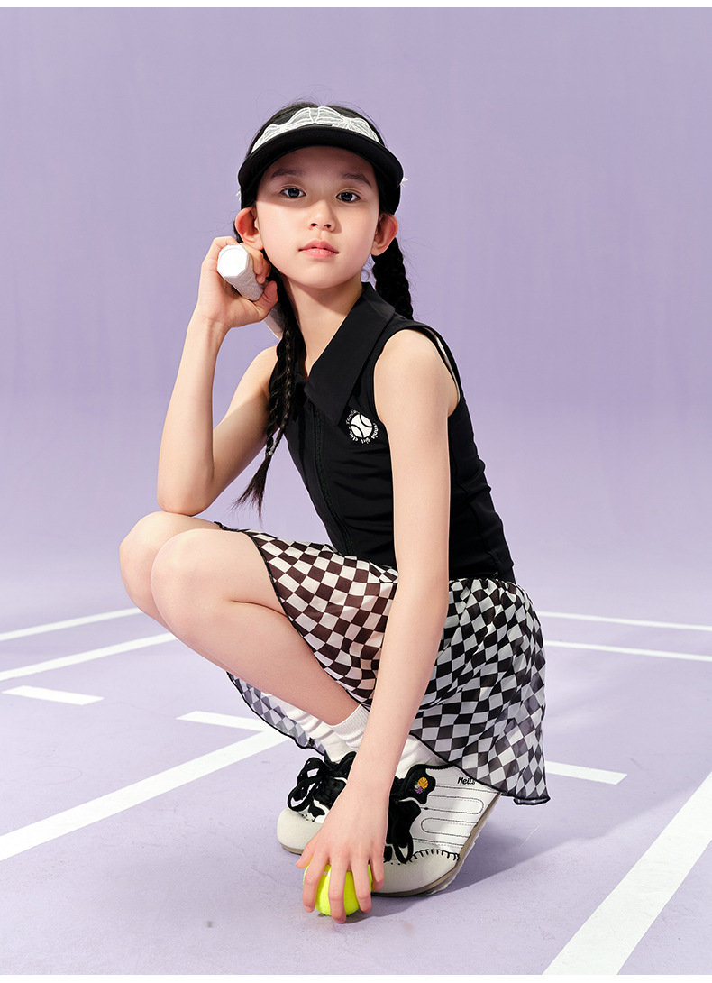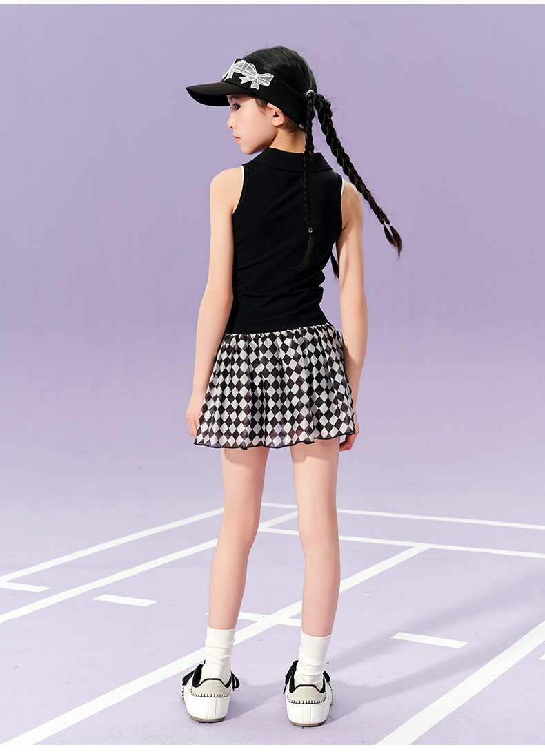 • 검은색 폴로 조끼와 체크무늬 테니스 스커트 조합 세트(소매가 188위안 이상)