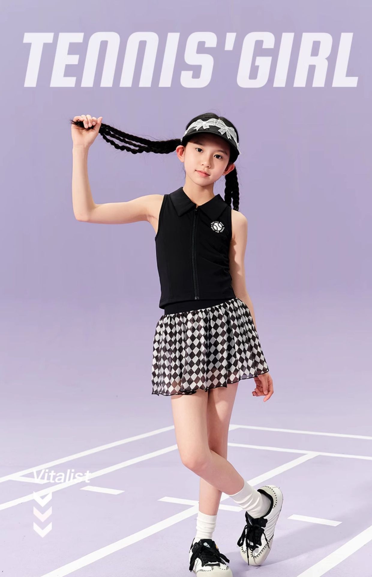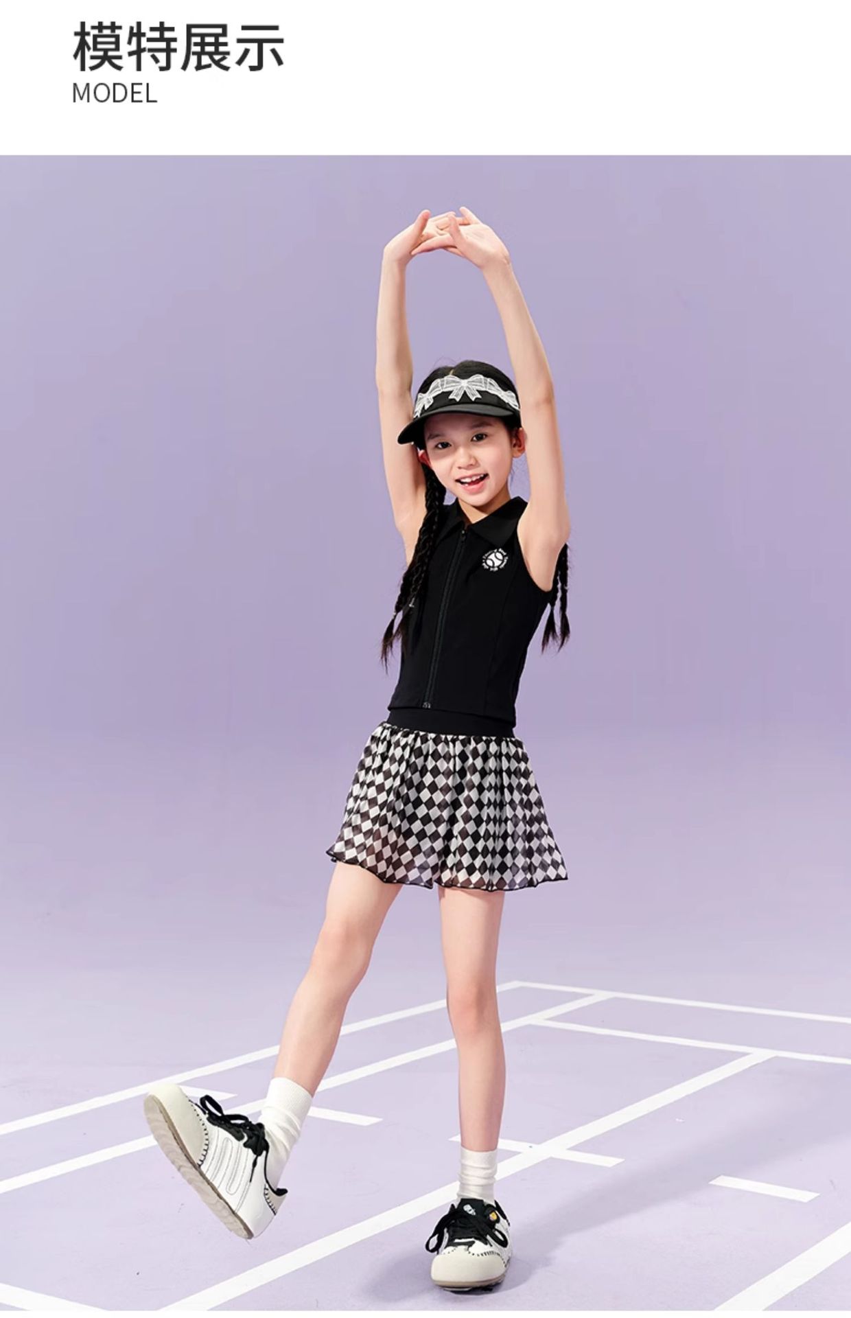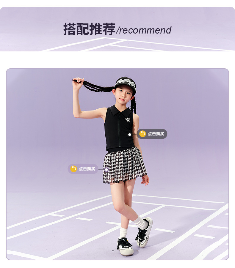• 검은색 폴로 조끼와 체크무늬 테니스 스커트 조합 세트(소매가 188위안 이상)