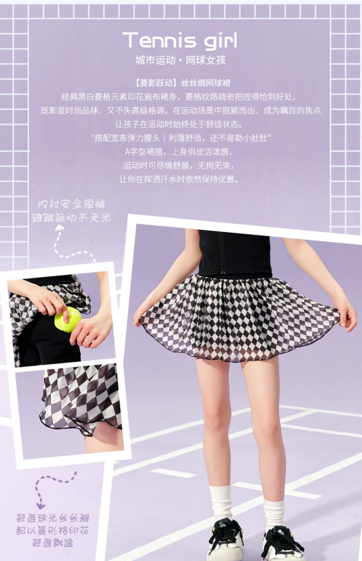 Taoding [Lingyingyuedong] 여아 스커트 여름 신작 메쉬 스커트 노출 방지 스포츠 스커트 테니스 스커트스토어 가기
