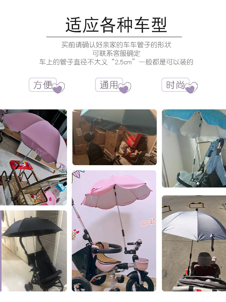 2024 새로운 대형 자외선 차단제 아기 파라솔 유모차 우산 검은 고무 유모차 우산 걷는 아기 유물 비치 클립 우산스토어 가기