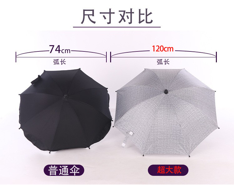2024 새로운 대형 자외선 차단제 아기 파라솔 유모차 우산 검은 고무 유모차 우산 걷는 아기 유물 비치 클립 우산