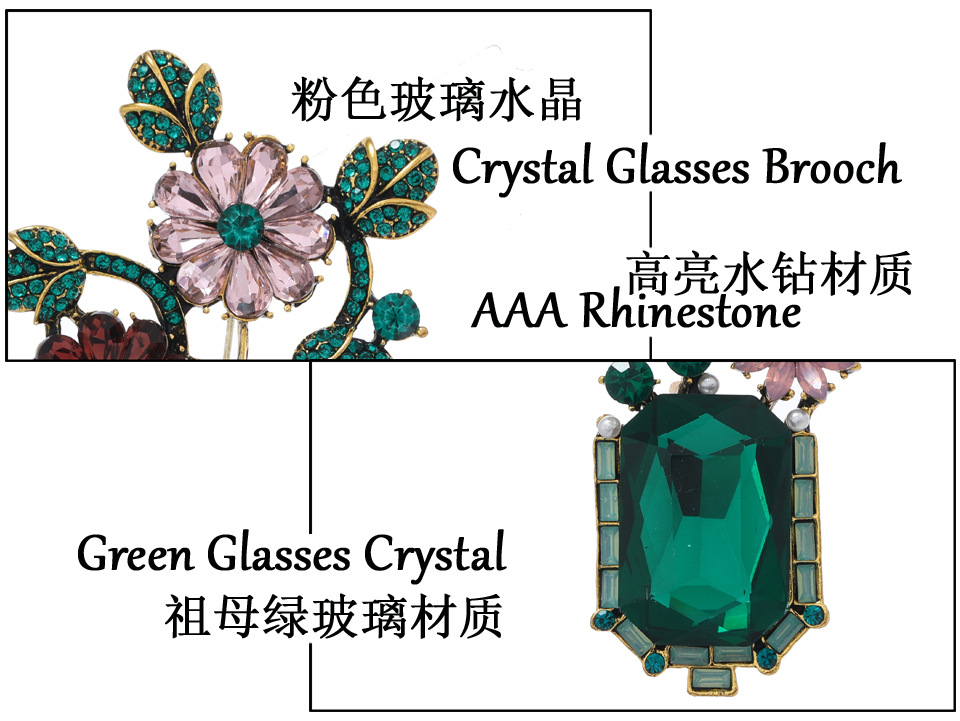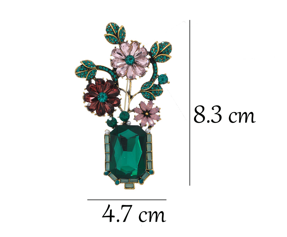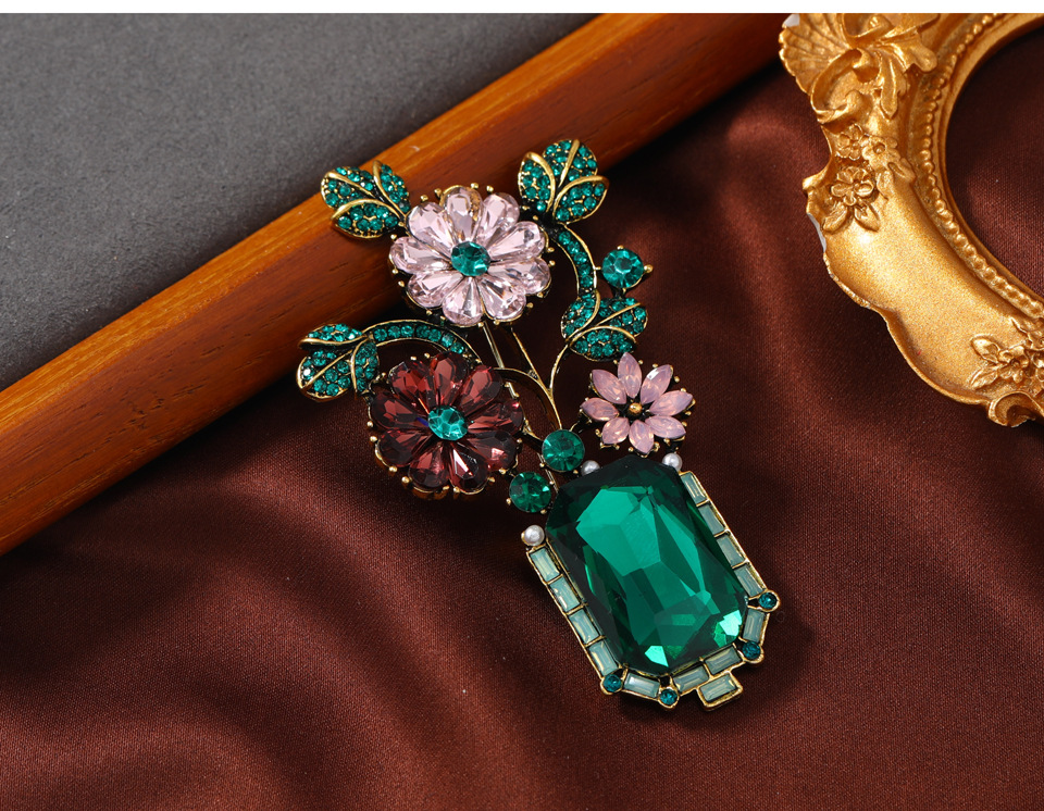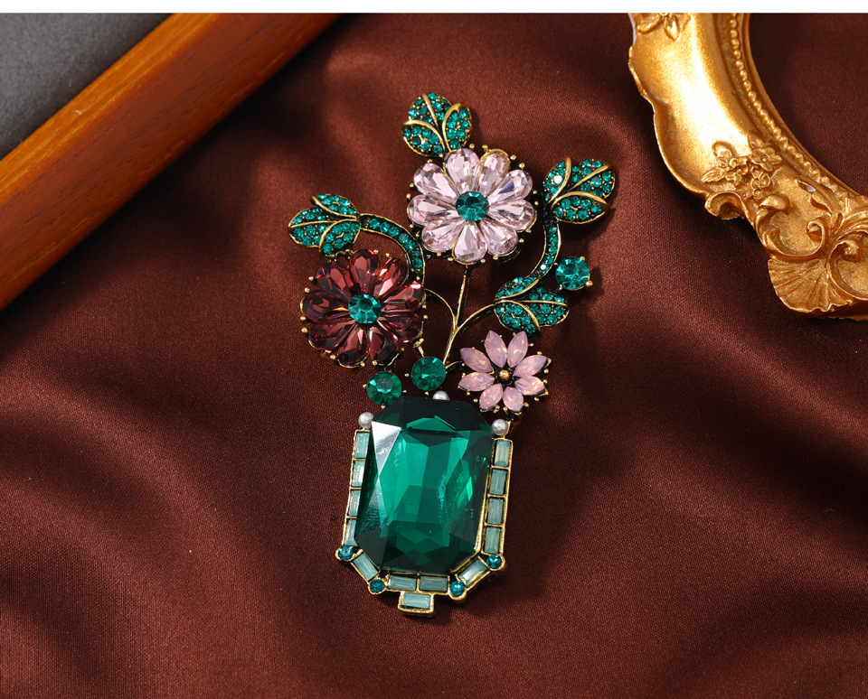 레트로 뉴 프렌치 그린 크리스탈 꽃병 브로치, 맞춤형 틈새 라이트 럭셔리 코사지 브로치, 여성 의류 액세서리스토어 가기