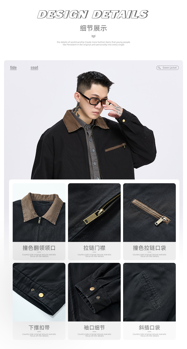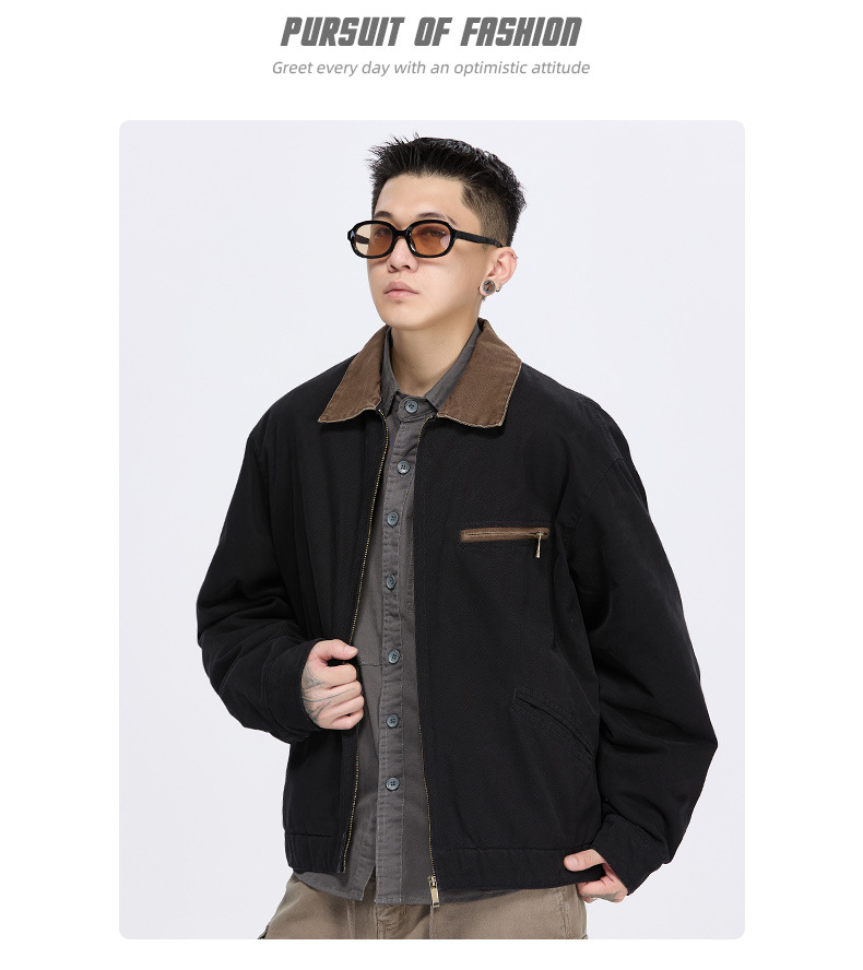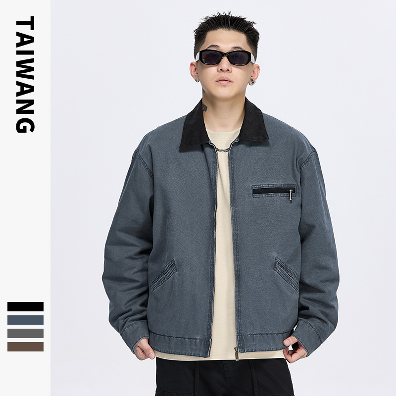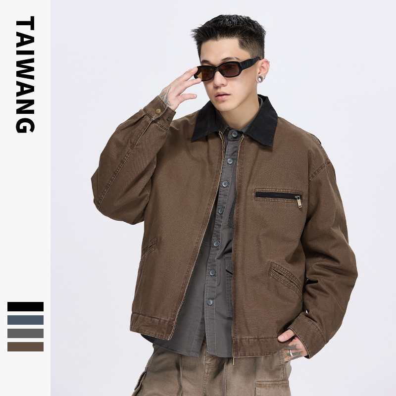 태국 왕 남자 미국 복고풍 디트로이트 자켓 지퍼 작업복 봄과 가을 남자 캔버스 랩 세탁 재킷 남자스토어 가기