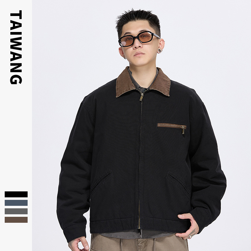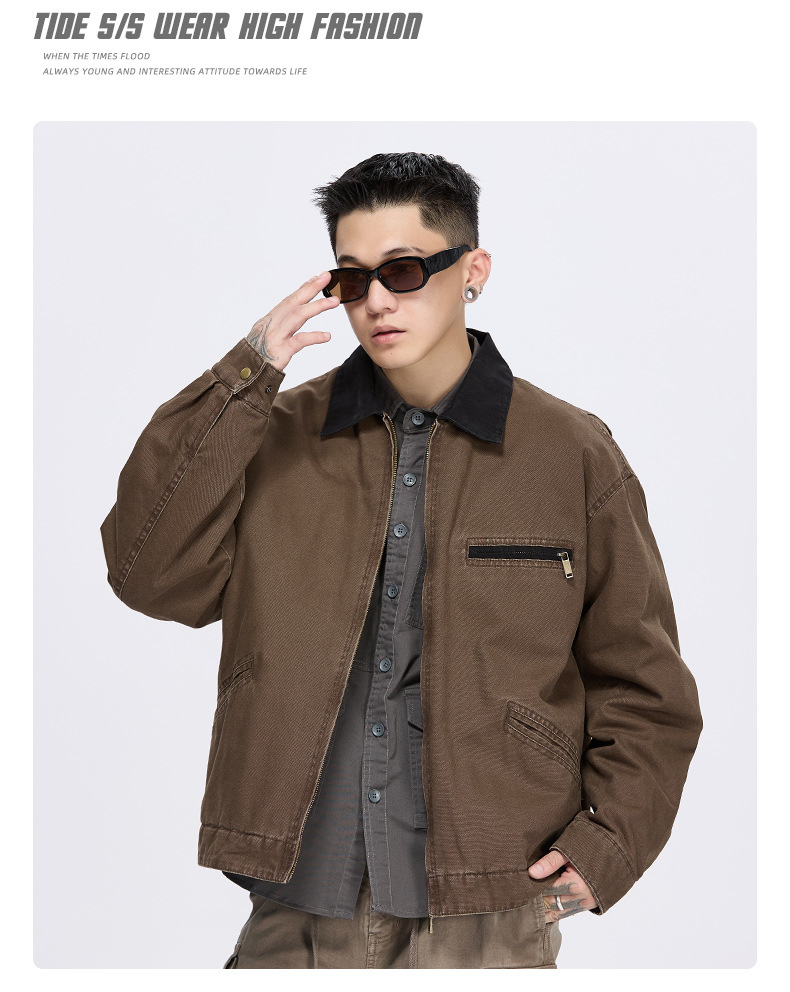 태국 왕 남자 미국 복고풍 디트로이트 자켓 지퍼 작업복 봄과 가을 남자 캔버스 랩 세탁 재킷 남자
