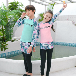 2023 어린이 수영복 긴 소매 다이빙 세트 새로운 소년과 소녀 해변 인쇄 분할 수영복 부모-어린이 시리즈스토어 가기