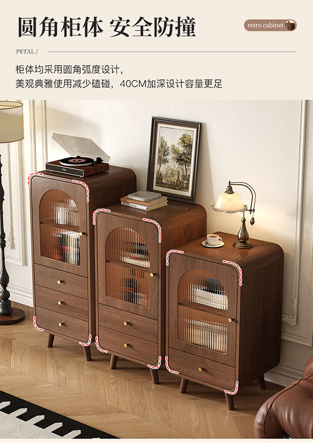 레트로 스타일 저녁 식사 사이드 버킷 캐비닛 거실 TV 사이드 캐비닛 벽 저장 캐비닛 침실 침대 끝 저장 낮은 캐비닛스토어 가기