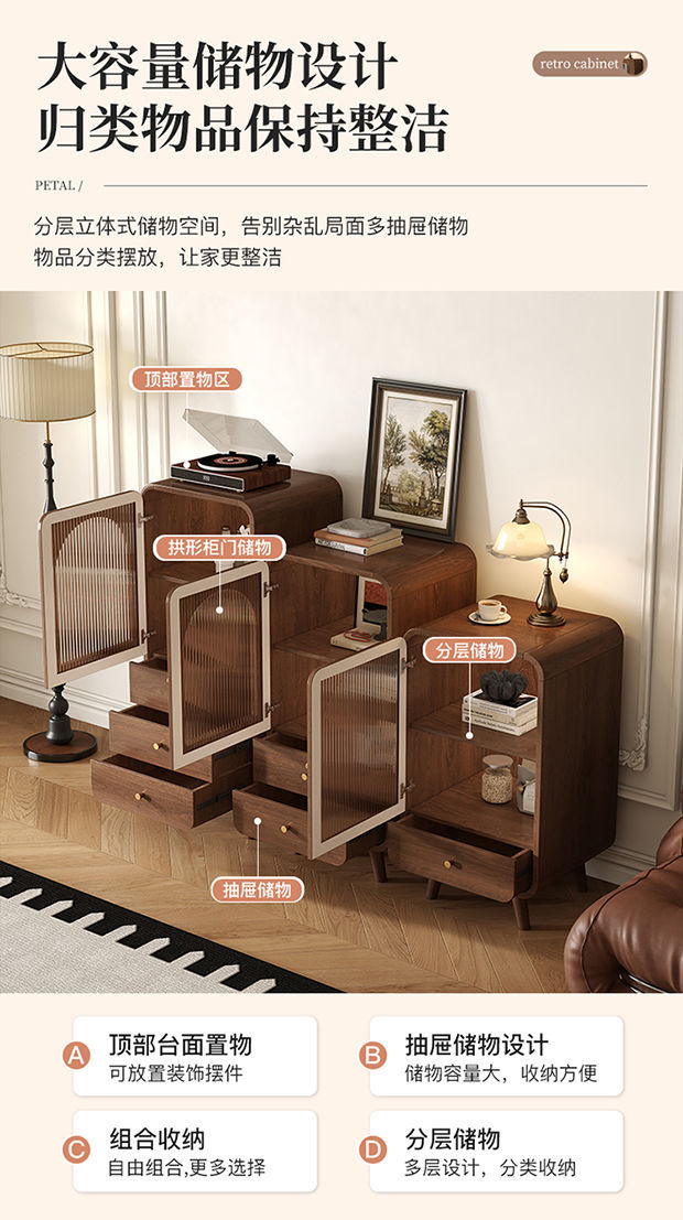 레트로 스타일 저녁 식사 사이드 버킷 캐비닛 거실 TV 사이드 캐비닛 벽 저장 캐비닛 침실 침대 끝 저장 낮은 캐비닛