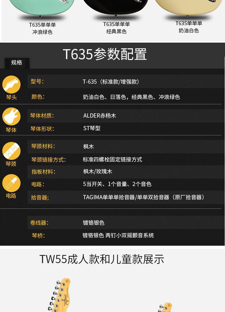 Tagima Tagima TG 510 530 T635 초보자 초보자 DW 성인 어린이 전문 전기 원피스