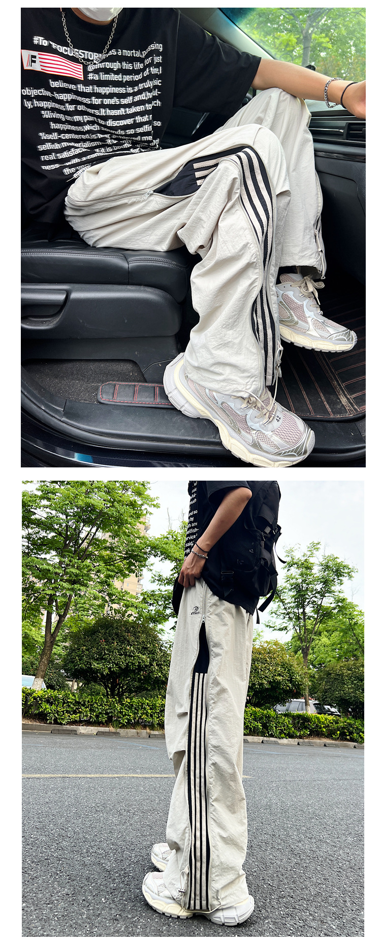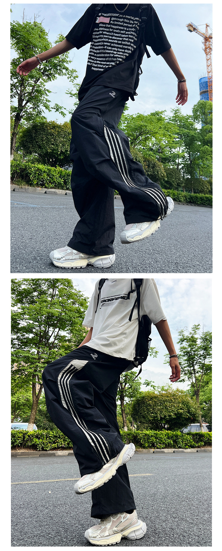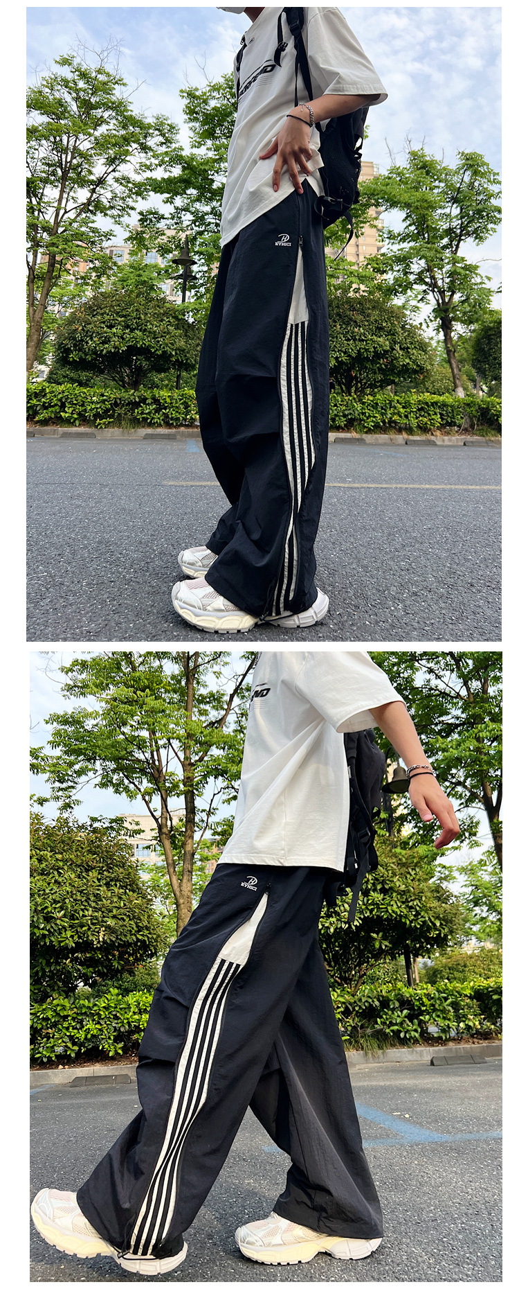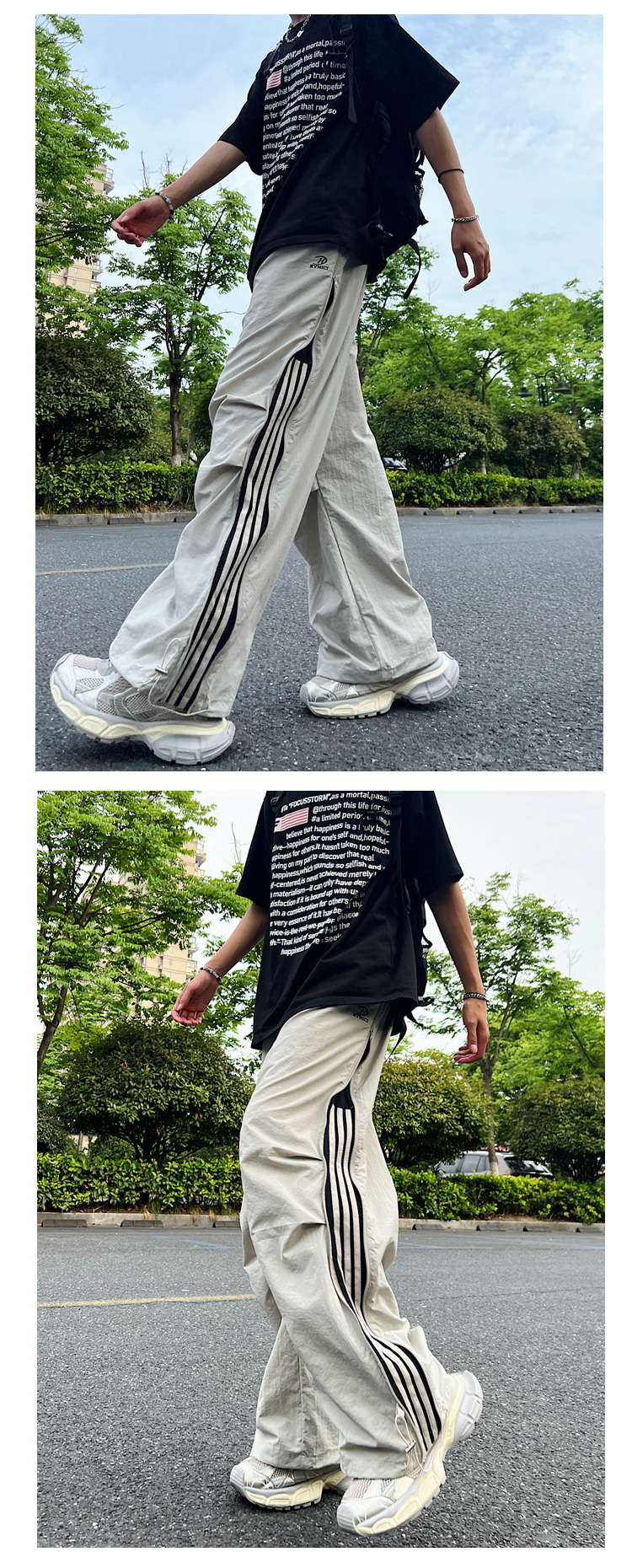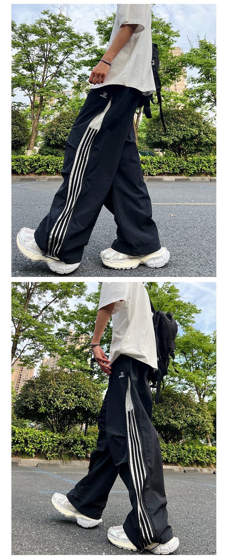 남성용 파라트로opers 카고 팬츠 2025 봄 여름 하이 스트리트 패션 브랜드 3 스트라이프 루즈 스트레이트 스포츠 캐주얼 바지스토어 가기