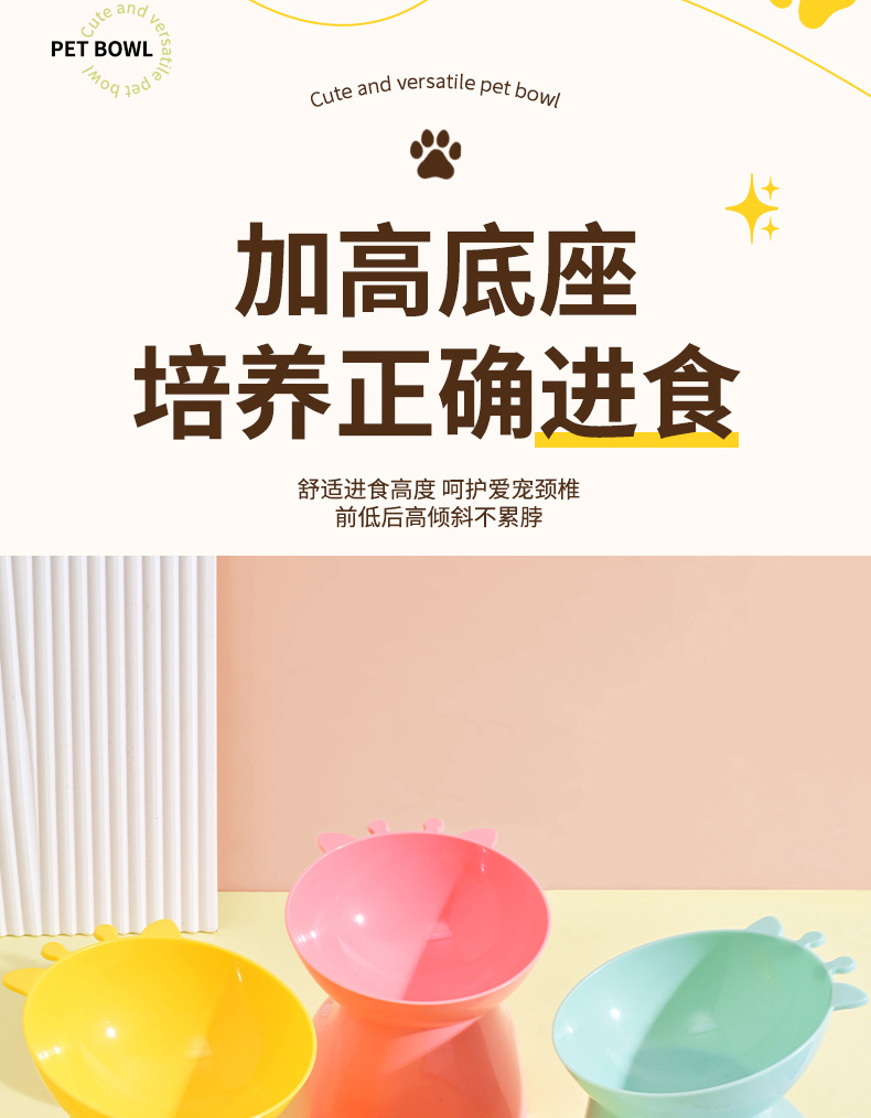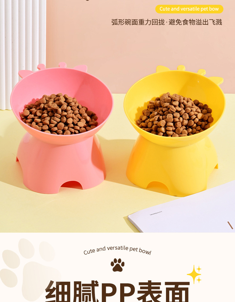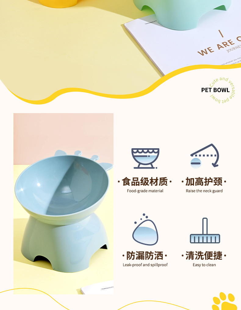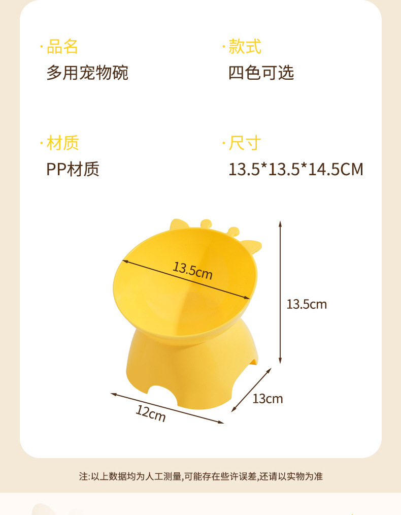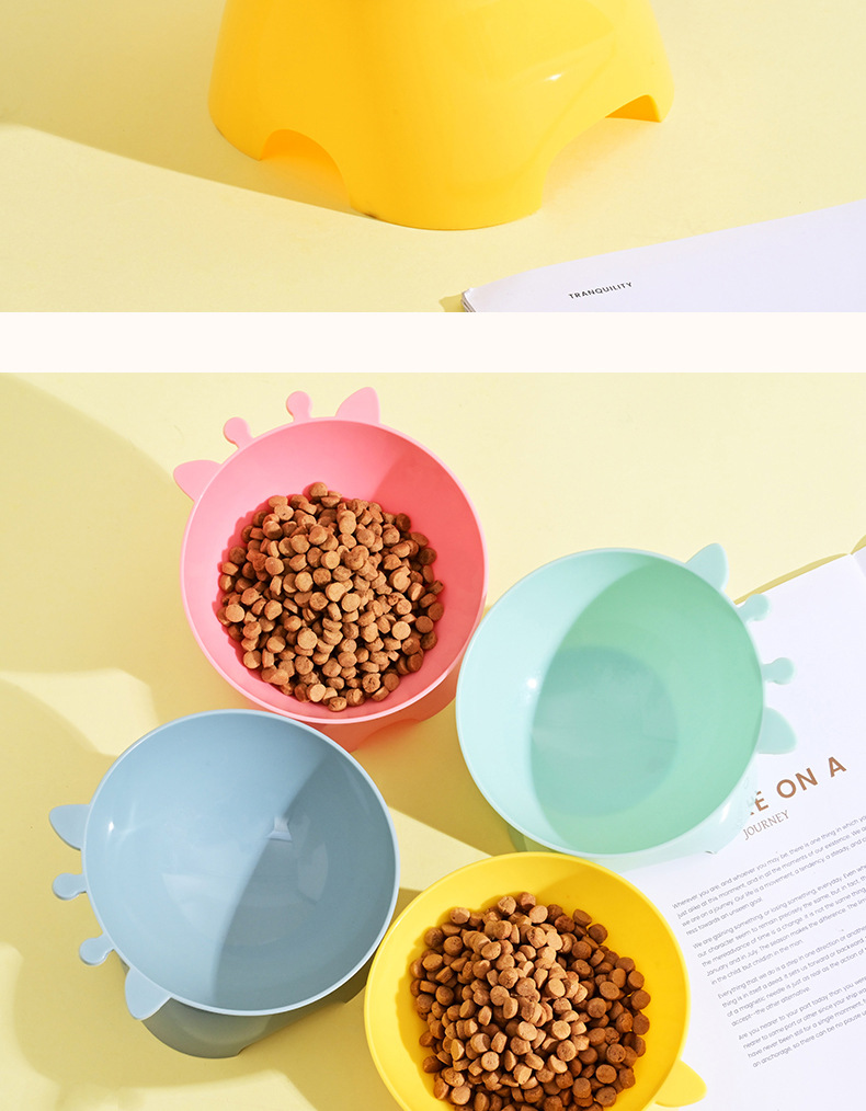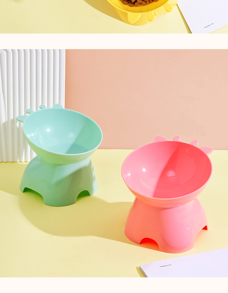 새로운 도파민 컬러 기린 높은 사발 고양이 그릇 비스듬한 목 보호 그릇 고양이 식품 분지 안티 노크 애완 동물 그릇