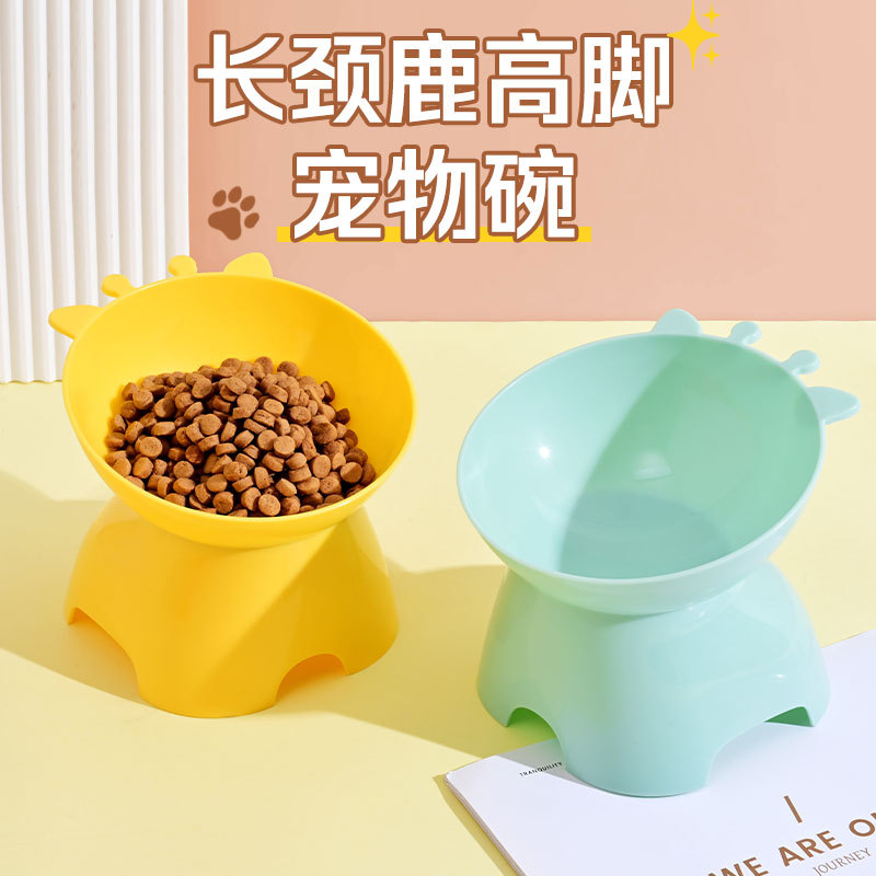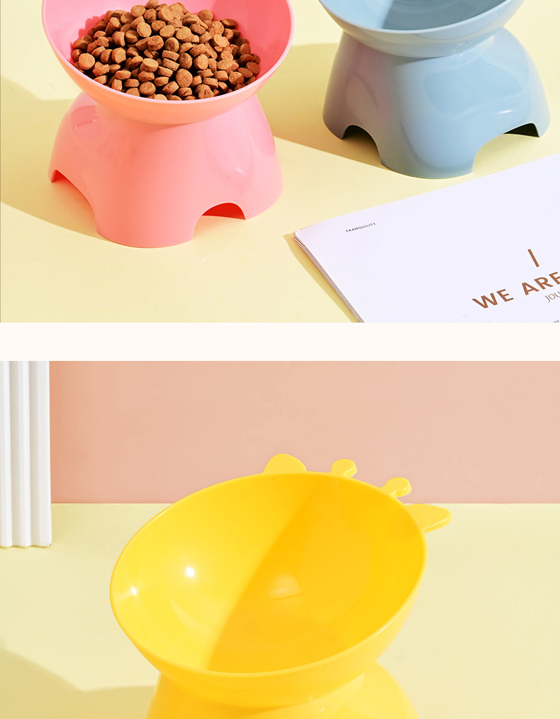 새로운 도파민 컬러 기린 높은 사발 고양이 그릇 비스듬한 목 보호 그릇 고양이 식품 분지 안티 노크 애완 동물 그릇스토어 가기