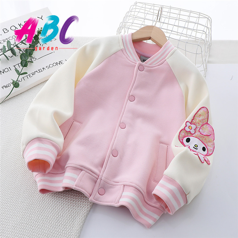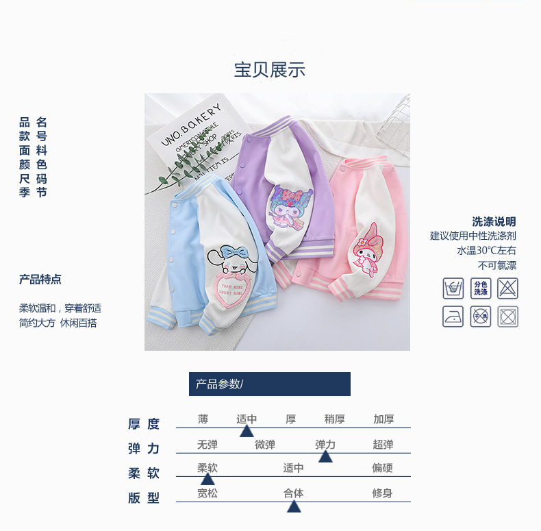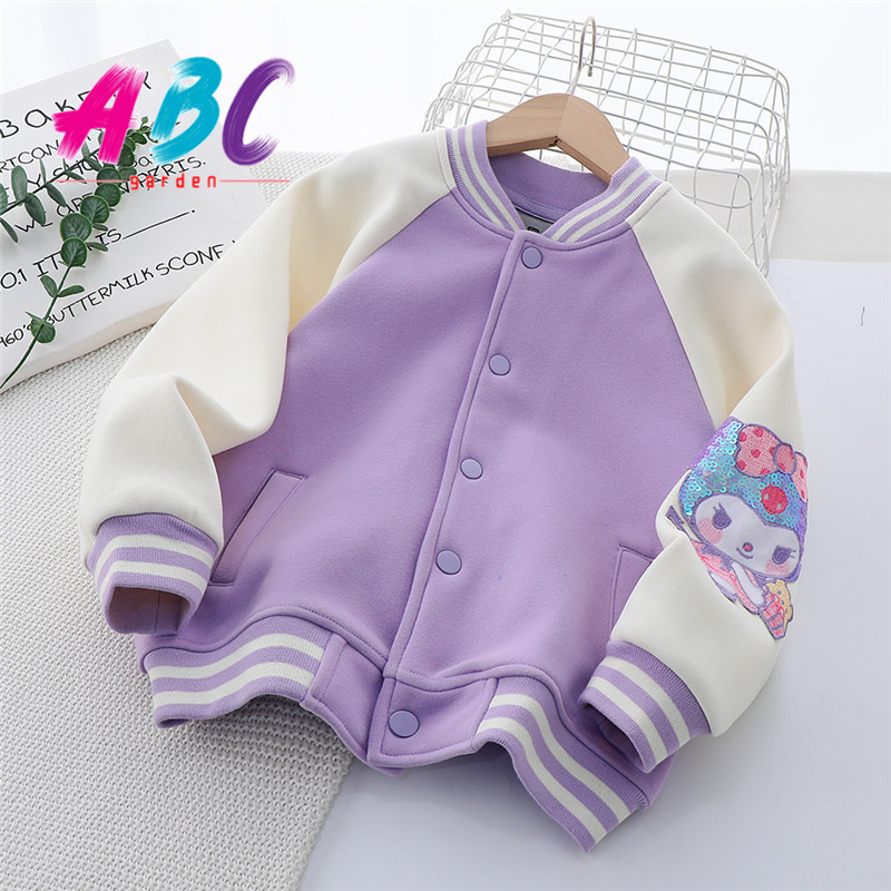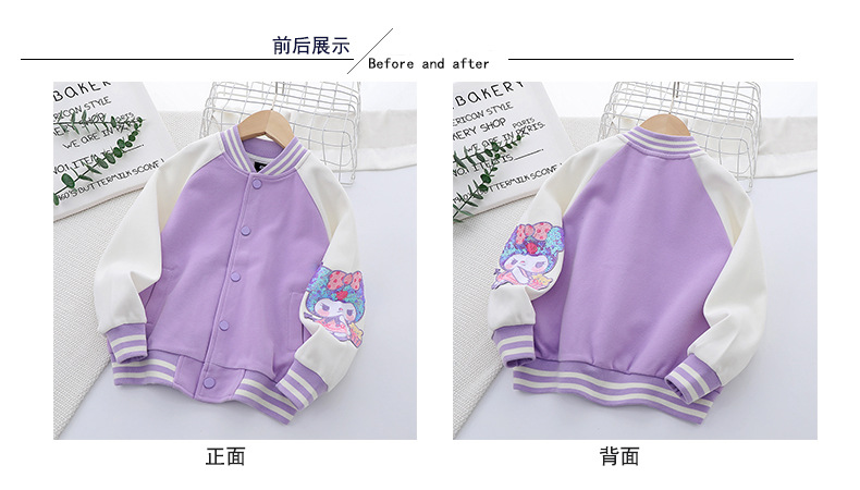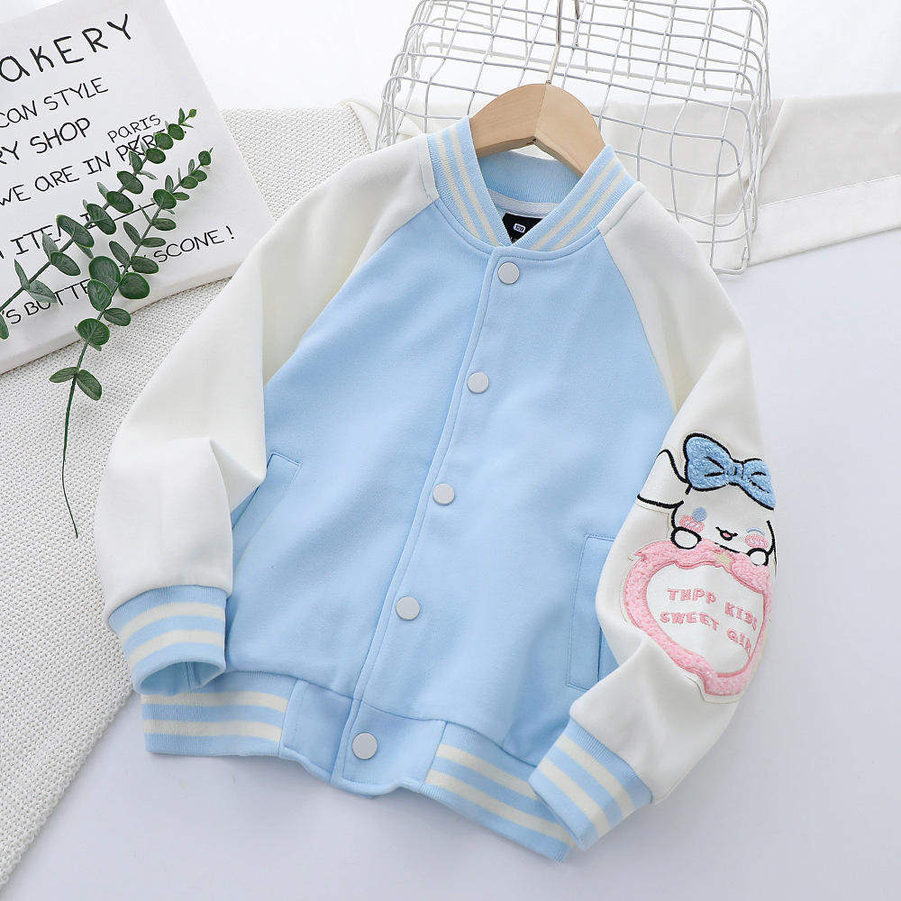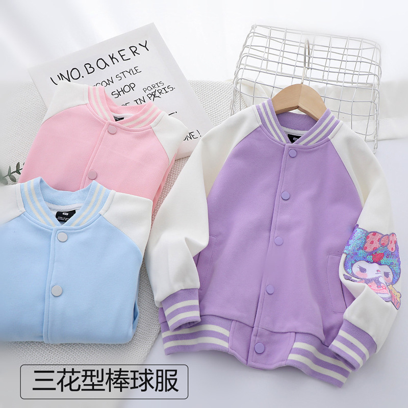 국경 간 소녀 코트 봄과 가을 어린이 착용 새로운 스타일 중대형 어린이 야구 세트 만화 탑 컬러 블록 카디건 어린이 코트스토어 가기
