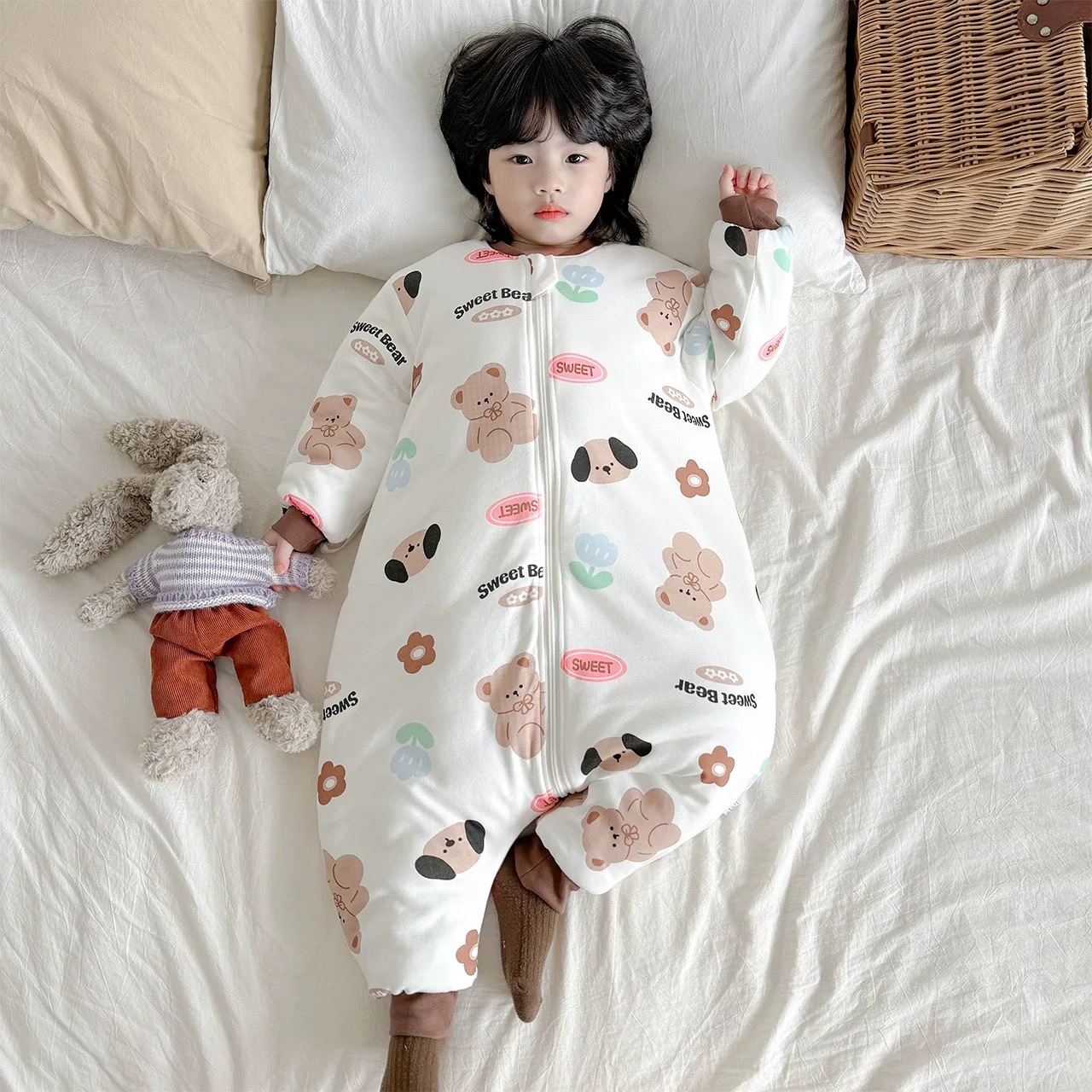 (A급 겨울용 240g 보온 순면 두꺼운 누빔 방한 침낭) 어린이 일체형 방수 이불 홈웨어