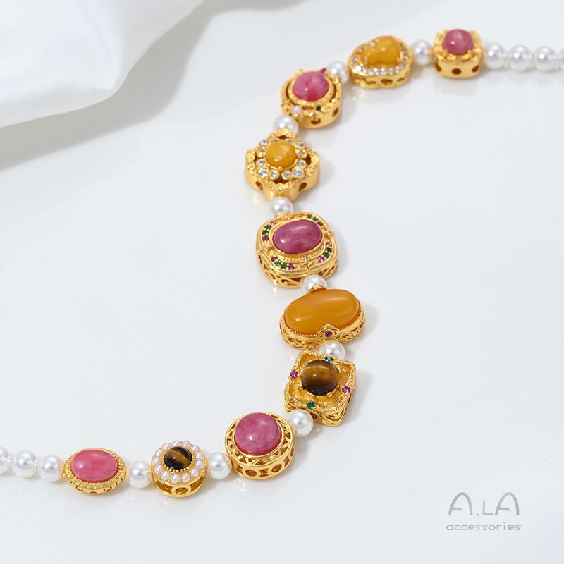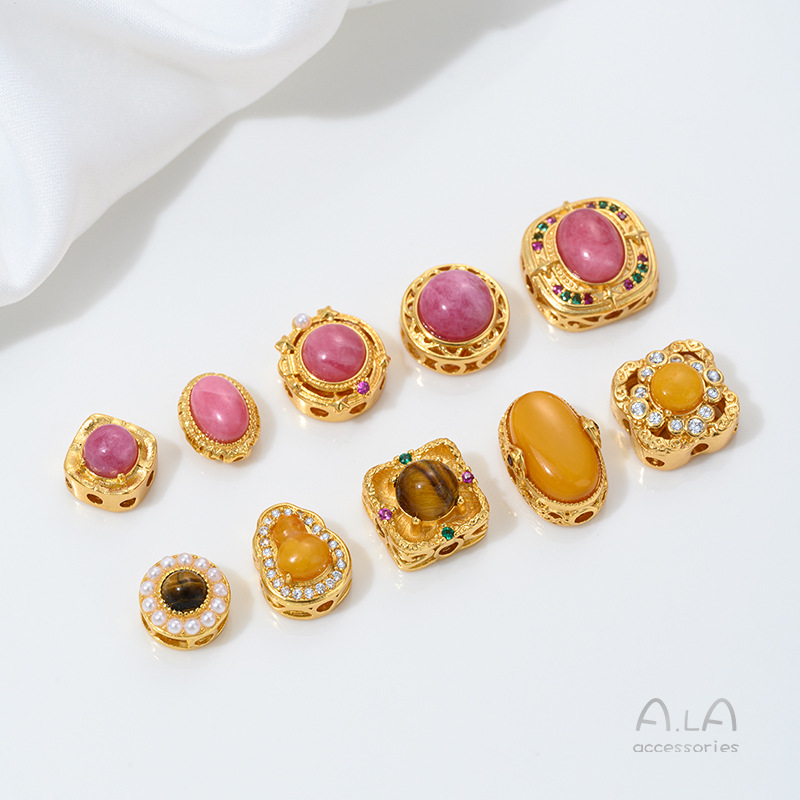 강력한 색상 보존 24K 리얼 골드 도금 로즈 스톤 타이거 아이 스톤 밀랍 다공성 비즈 액세서리 수제 비즈 소재스토어 가기