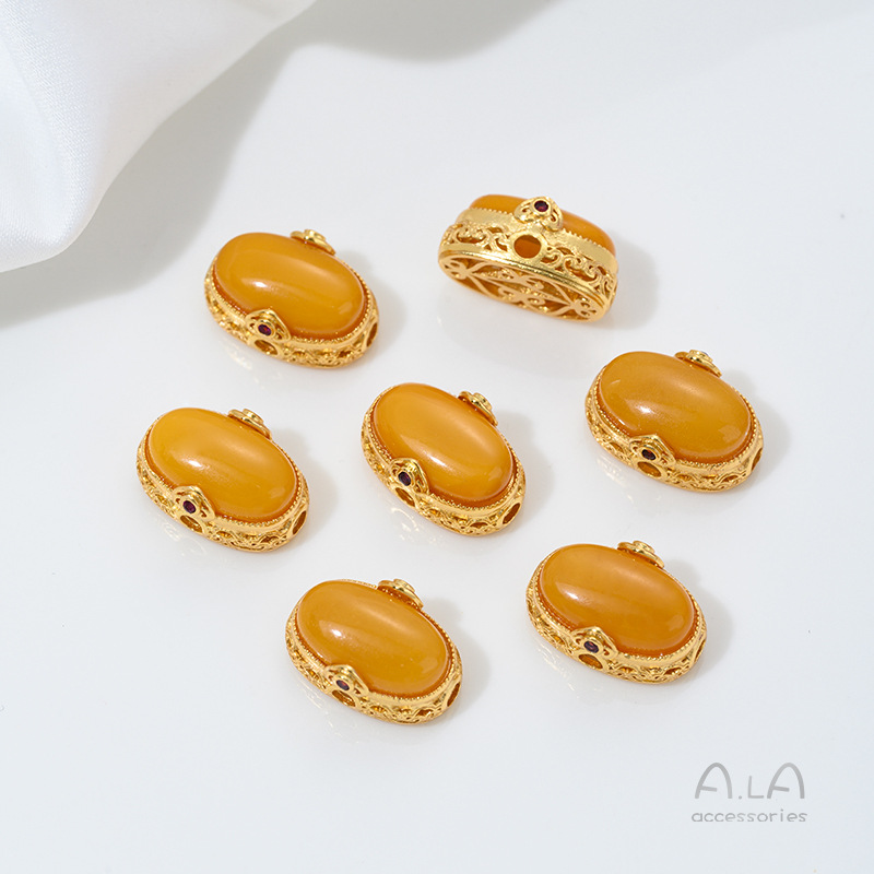 강력한 색상 보존 24K 리얼 골드 도금 로즈 스톤 타이거 아이 스톤 밀랍 다공성 비즈 액세서리 수제 비즈 소재