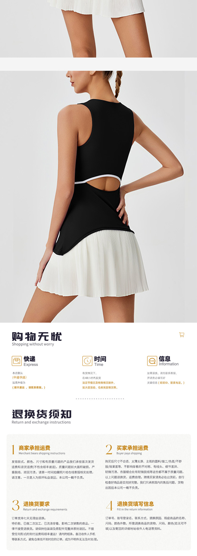 국경 간 여름 폭발 대비 색상 스티칭 주름 원피스 여성용 중공 퀵 드라이 테니스 스커트 민소매 요가 옷스토어 가기