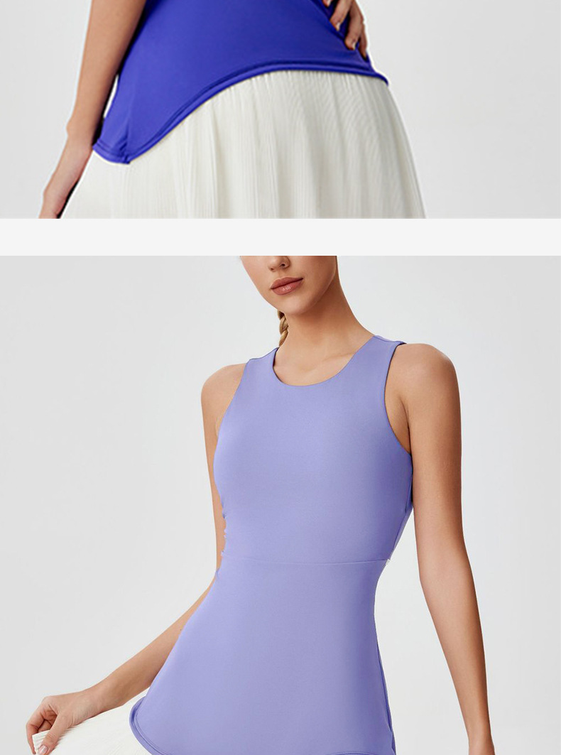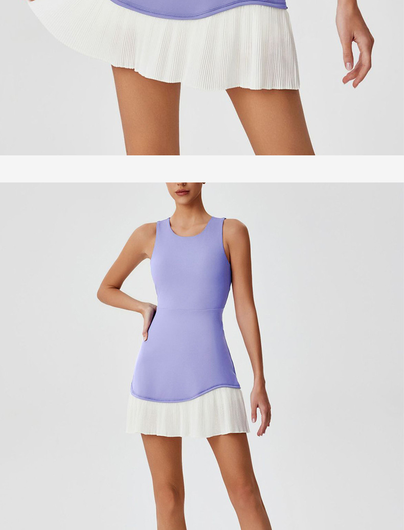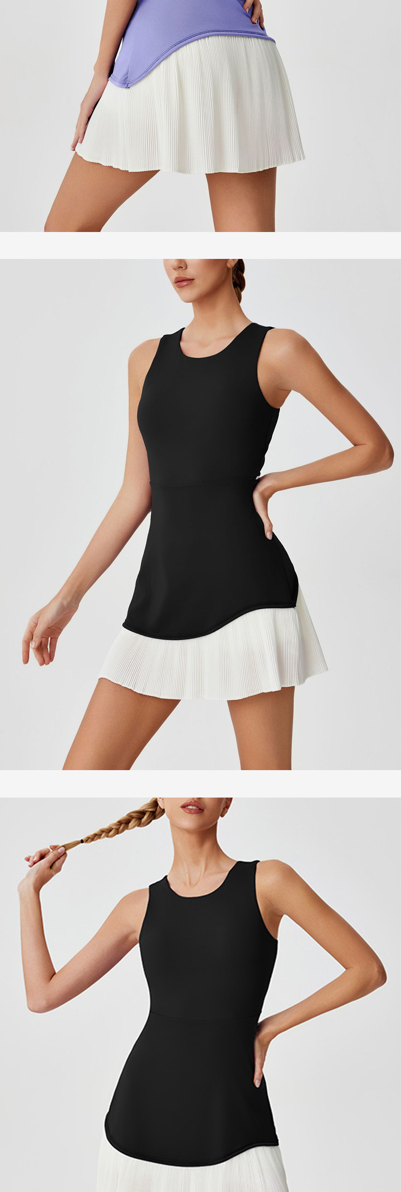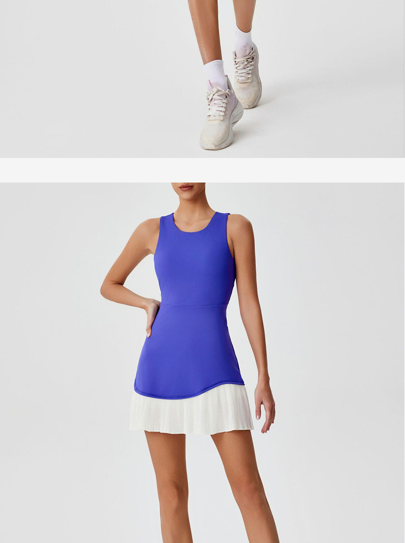 국경 간 여름 폭발 대비 색상 스티칭 주름 원피스 여성용 중공 퀵 드라이 테니스 스커트 민소매 요가 옷